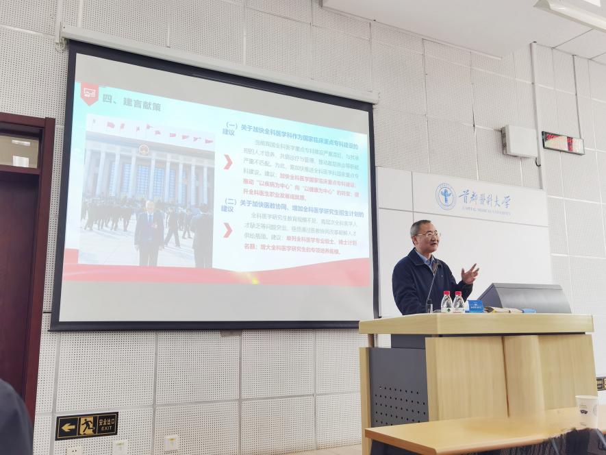 为深入学习贯彻第十四届全国人大第三次会议和政协第十四届全国委员会第三次会议精神,3月26日下午,学院特邀全国政协委员、学校全科医学与继续教育学院院长吴浩教授来学院举办宣讲会,与师生分享参会经历,宣讲两会精神。宣讲会由学院党委副书记赵艳芝主持,学院班子成员、中层干部及师生代表100余人参加了会议。