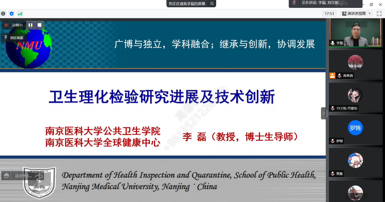 检验学学系邀请南京医科大学李磊教授作“卫生理化检验研究热点及融合创新进展”线上讲座