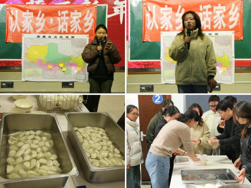 活动以“认家乡,话家乡”开场,来自日喀则、昌都、山南、林芝等地的藏族学生用乡音讲述家乡故事,在地图标注家乡位置,分享布达拉宫、纳木错等地风土人情。师生围坐一起,品尝藏族学生从家乡带的酥油茶、奶渣饼、卡塞等特色美食,讲述美食背后的文化故事。活动还精心安排了丰富多彩的藏族传统文化体验,如跳锅庄舞、品尝藏式美食、学做藏式饺子和古突等,现场洋溢着欢乐融洽的气氛。最后,师生共跳锅庄舞将活动推向了高潮,热情奔放、和谐欢快的舞步,传递着浓浓的民族团结情谊,为汉藏师生搭建了相互了解、沟通交流的桥梁。