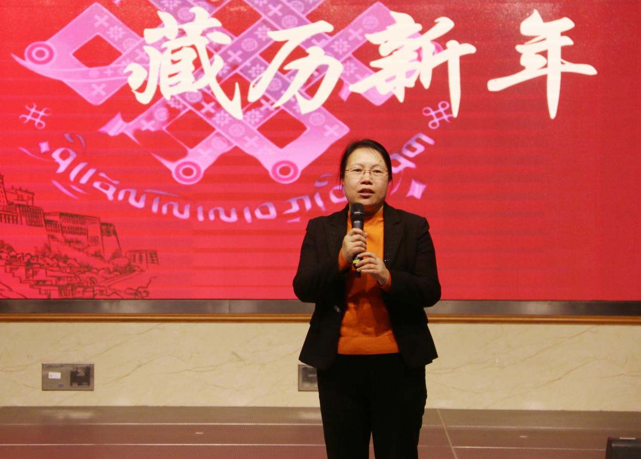 赵艳芝代表学院向全体藏族学生送上新春祝福,鼓励不同民族的学生在日常学习生活增进交流、加深理解、建立情谊,并强调活动旨在搭建汉藏文化桥梁,加深师生对不同民族文化的认知和理解,进一步铸牢中华民族共同体意识。