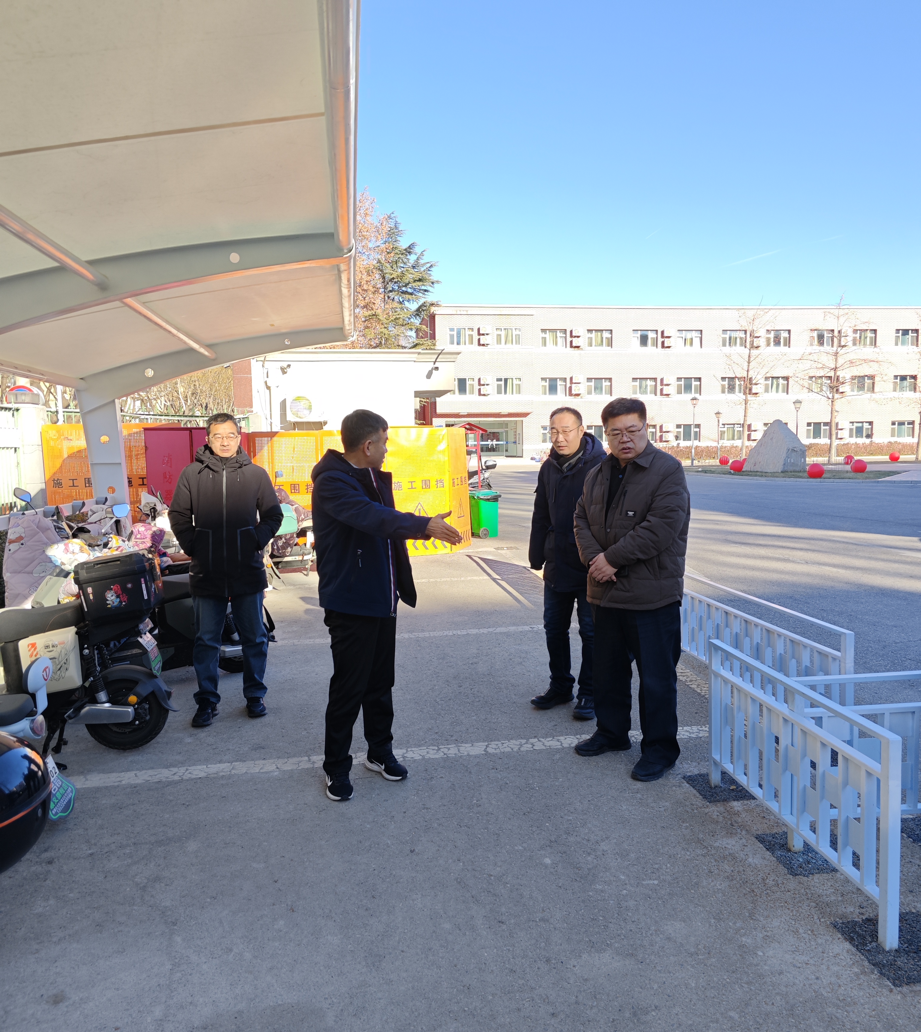 检查过程中,吴兵副校长一行重点走访查看了校区内新建的充电自行车车棚、中心实验室、危化品库房等重点部位与关键场所。