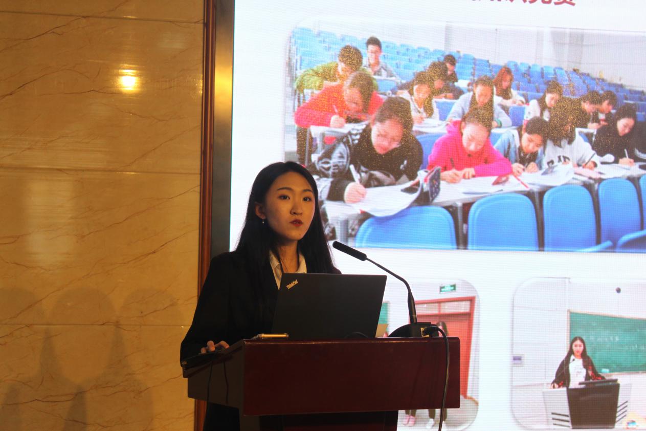 各入围复赛班级代表依次上台进行展示。一张张精美的PPT,展示着同学们一年的学习生活情况,描绘着学生们的梦想、行动与收获。一位位班级汇报人让我们看到学生良好的精神面貌和对班级、专业及学院的归属与热爱。