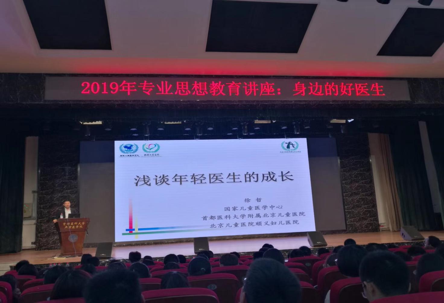 随后,国家儿童医学中心哔咔漫画下载 附属北京儿童医院、北京儿童医院顺义妇儿医院副院长徐哲做《浅谈年轻医生的成长》专题讲座。徐院长先后分享了自己赴美、赴日学习的经历,并从学习、生活、工作三个方面为广大师生讲述了一名年轻医生的成长之路。徐院长勉励同学们,要尽早开悟,不断学习,平衡好生活和学习的关系,不断提升自己的综合素质。