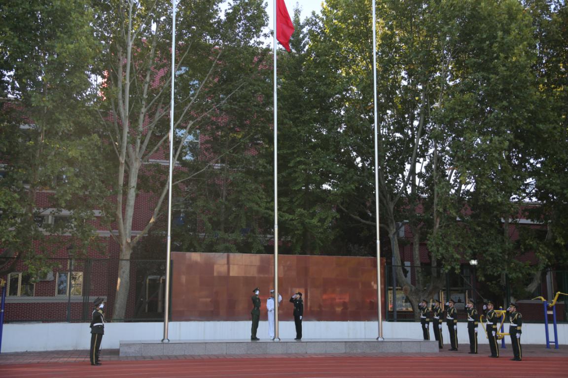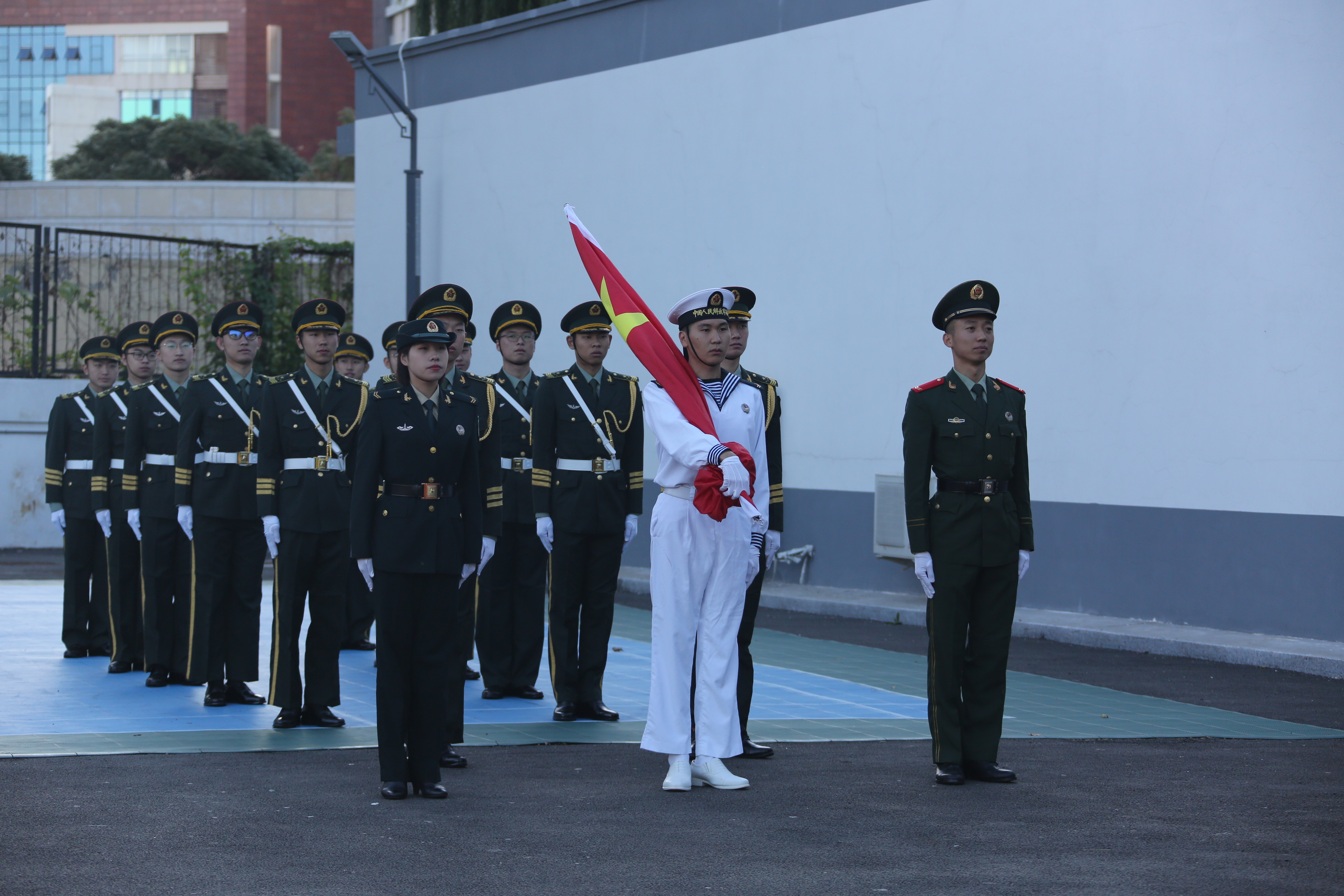 10月8日,哔咔漫画下载 2019级全体军训学生在操场举行升国旗仪式。学院党委书记吴兵、院长杨红、党委副书记、军训团副政委崔群颖、军训团其他教师和610余名大一新生共同参加了升国旗仪式。