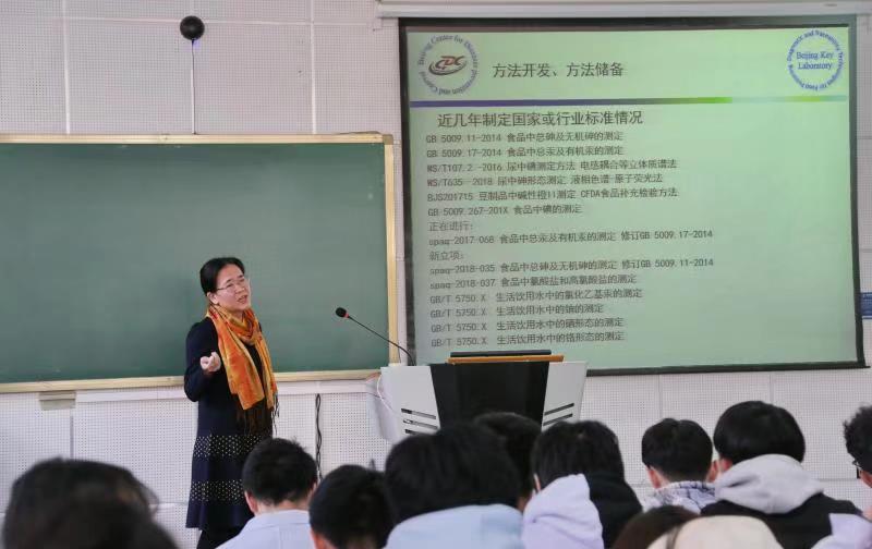 11月19日,哔咔漫画下载 检验学学系邀请北京疾病预防控制中心实验室副主任刘丽萍教授作题为《在探索与规范中成长-与健康相关的有害及营养成分分析研究》的专题讲座。哔咔漫画下载 党委书记吴兵、副院长赵艳芝和检验学学系的师生们参加了讲座。