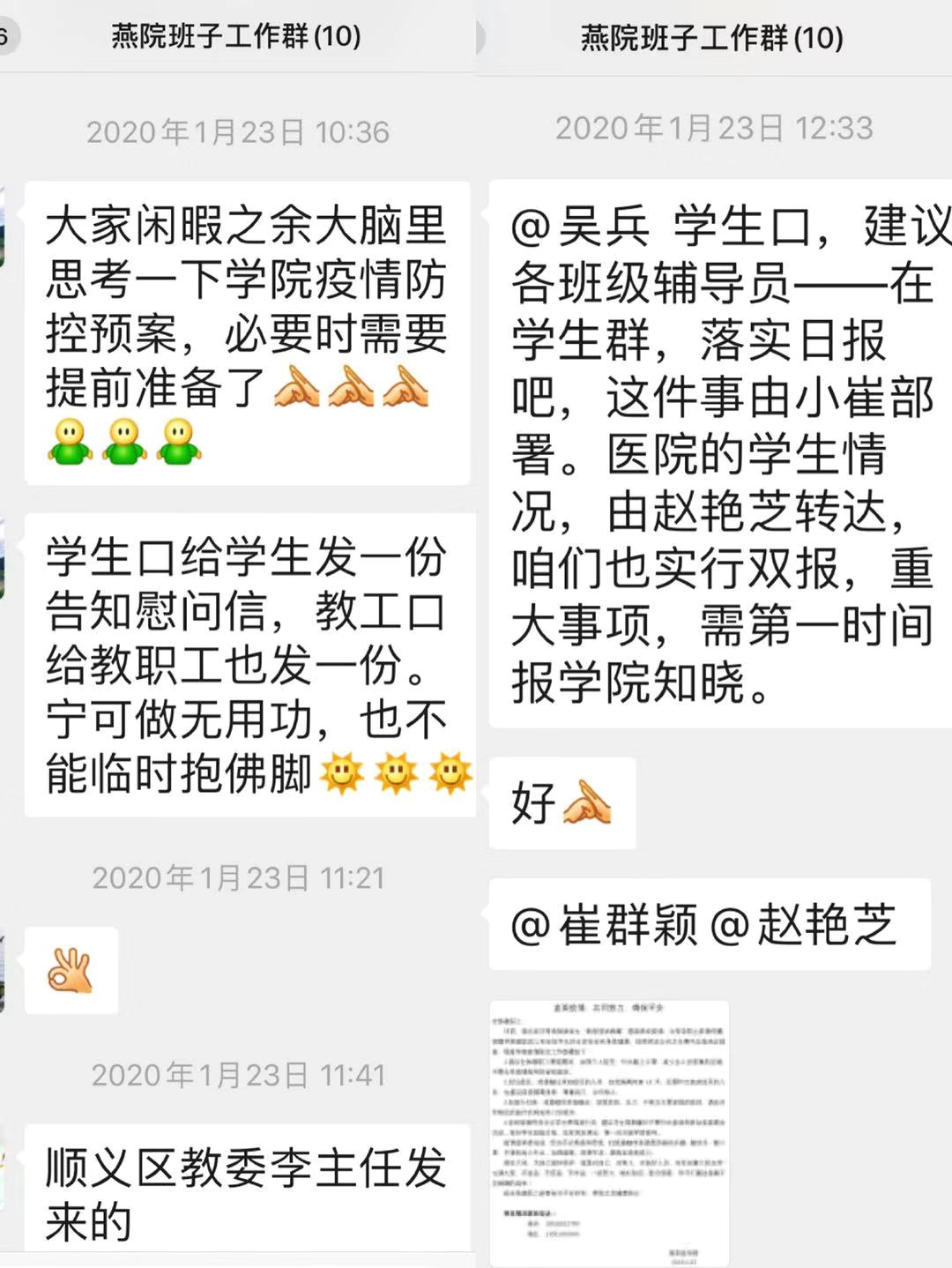 (学院领导班子在特殊时期通过微信、视频会议及时传达、部署防疫工作)