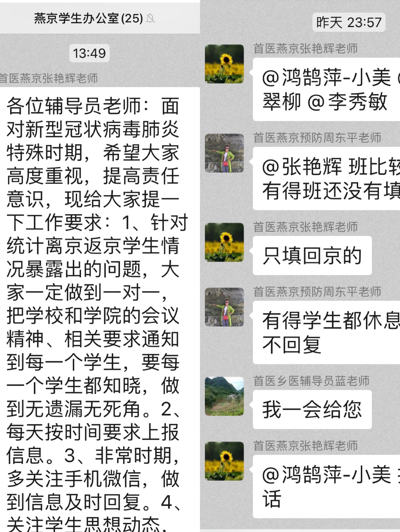 (各学系辅导员每天配合学生办公室及时掌握学生情况,做好各类信息上传下达)