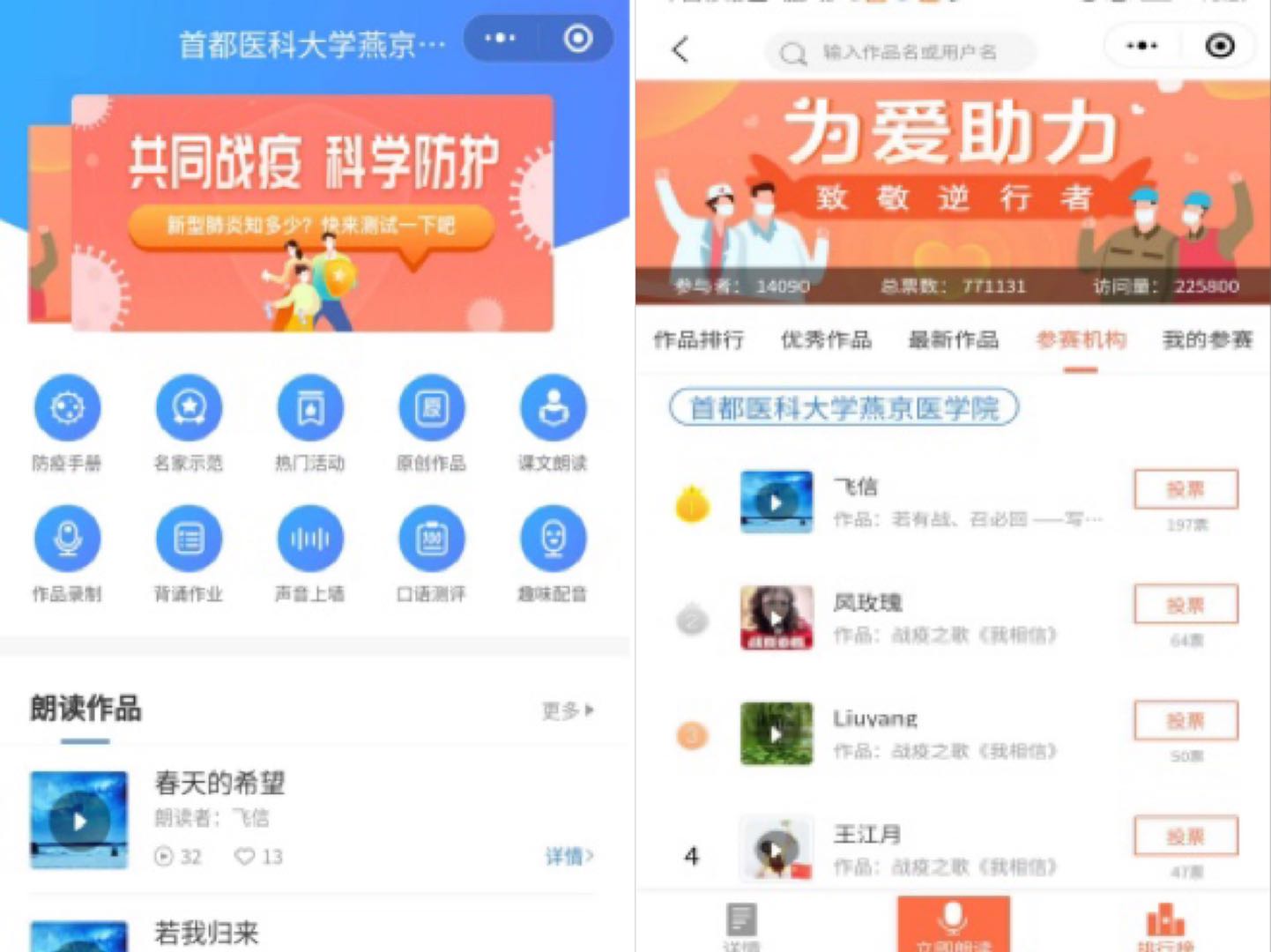 为积极探索防疫期间校园文化建设新模式,哔咔漫画下载 图书馆联合社会公益机构优谷朗读亭开展“为爱助力,致敬逆行者”大型主题线上诵读活动,活动充分运用网络多媒体技术,邀请学院师生线上朗读抗击疫情优秀报道、爱国主义名篇佳作,用声音为爱助力,致敬逆行者。