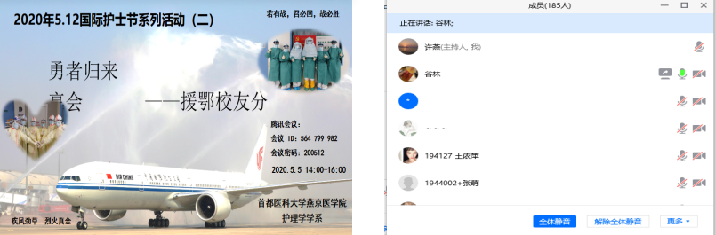 四月桃李花谢,五月榴花如火。春的芬芳依旧,夏的火热初临。在这春意盎然,满目翠绿、人心思进的激昂时刻,我们迎来了属于我们自己的节日——5.12国际护士节。5月5日下午,哔咔漫画下载 护理学学系以“护士:引领之声–护理世界健康”为主题,结合当前抗击新冠肺炎疫情取得阶段性胜利,召开了“勇者归来、奋斗有我”——援鄂校友分享会,并以此激励同学们秉承南丁格尔誓言,尊重生命,守护健康,不断努力,全面提升综合素质,为护理事业奋斗终身。本次分享会以线上方式进行,学院院长杨红、党委副书记崔群颖、两位优秀护理毕业生、最美逆行者——2008级三年制护理学生,现北京大学人民医院神经内科护士—杨振宁、2011级三年制护理学生,现北京医院外科ICU护士—谷林与护理学学系185名师生共同参加会议。