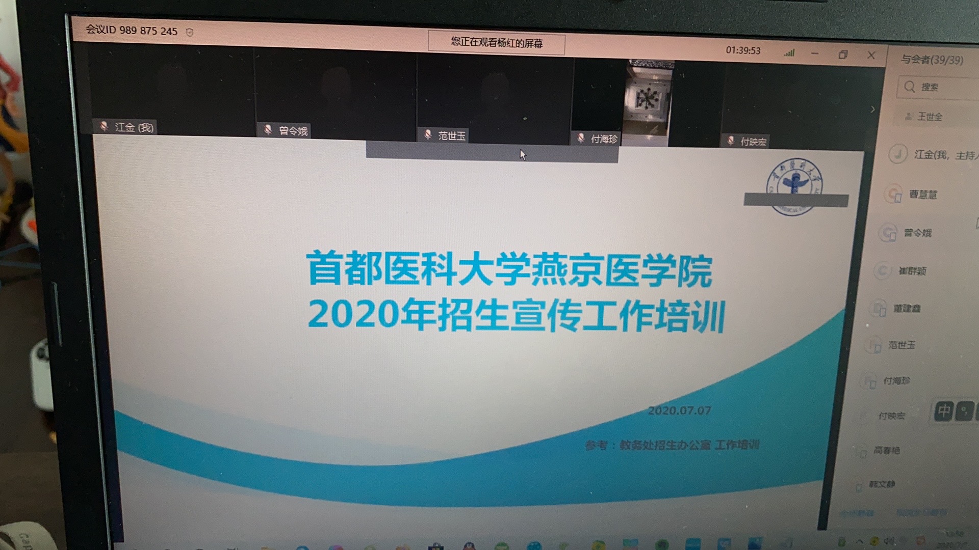 7月7日下午,我院召开2020年招生宣传工作动员暨培训视频会。学院党委书记吴兵、院长杨红、党委副书记崔群颖、副院长赵艳芝出席会议。学院参与2020年招生宣传工作的全部教师参加了培训会,会议由学院院长杨红主持。