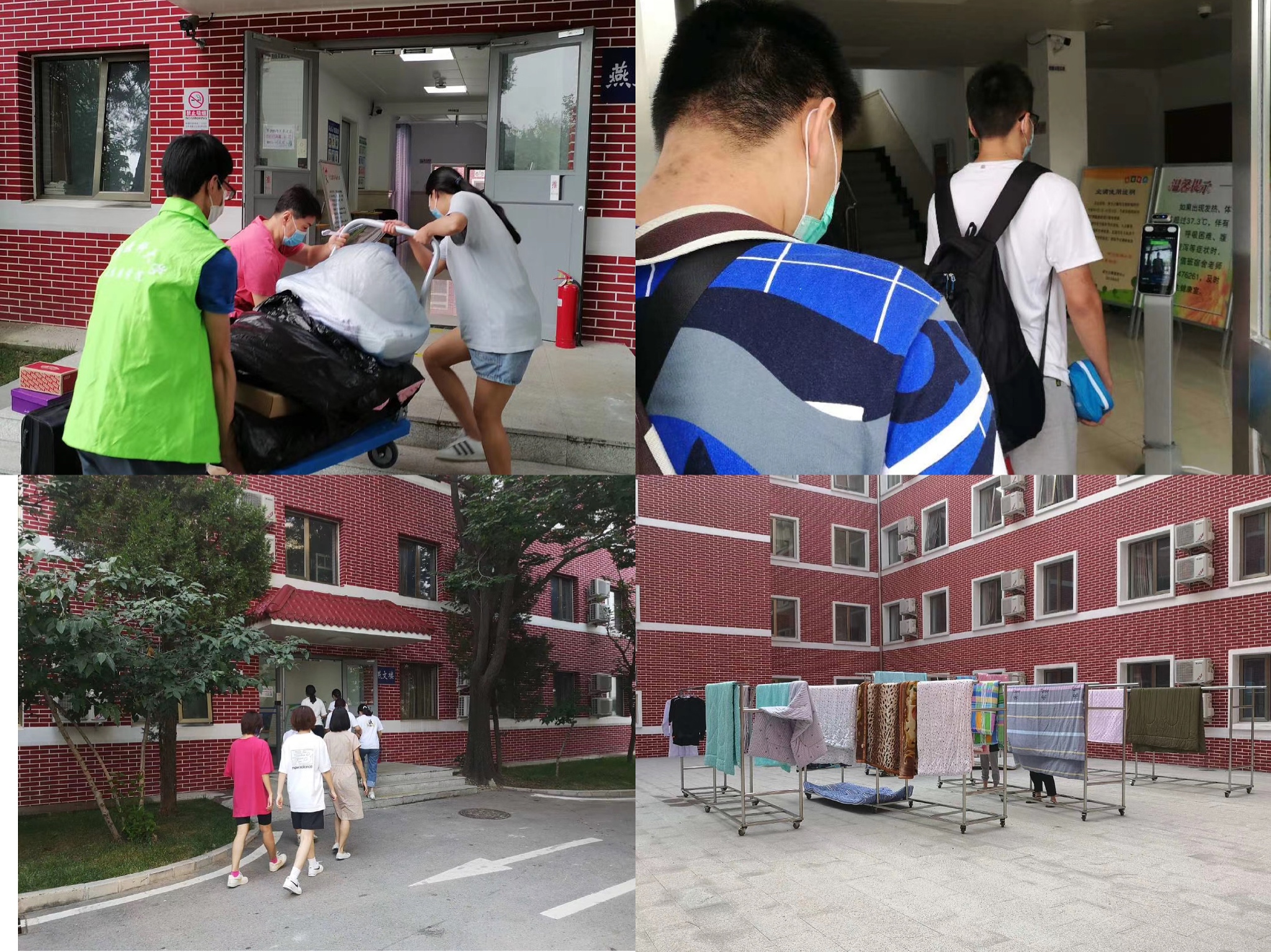 虽然舟车劳顿,但是提前到校的同学们回到宿舍放好行李后,第一时间报名主动参加志愿者服务,协助老师帮助其他返校的同学搬运和整理行李。