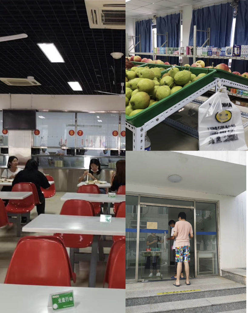 为配合疫情防控要求,学院餐厅、浴室和超市分别作了相应调整。开学初期,所有教职工不允许在餐厅内用餐,尽可能为学生在餐厅错峰、错时用餐创造时间和空间。在严格遵守疫情防控要求的同时,为了尽最大可能为学生提供便利,学院特别在燕谨楼一层106室设立疫情防控应急保障生活物资供应点,以最优惠的价格为学生及时提供日常必需生活用品及各种新鲜水果。