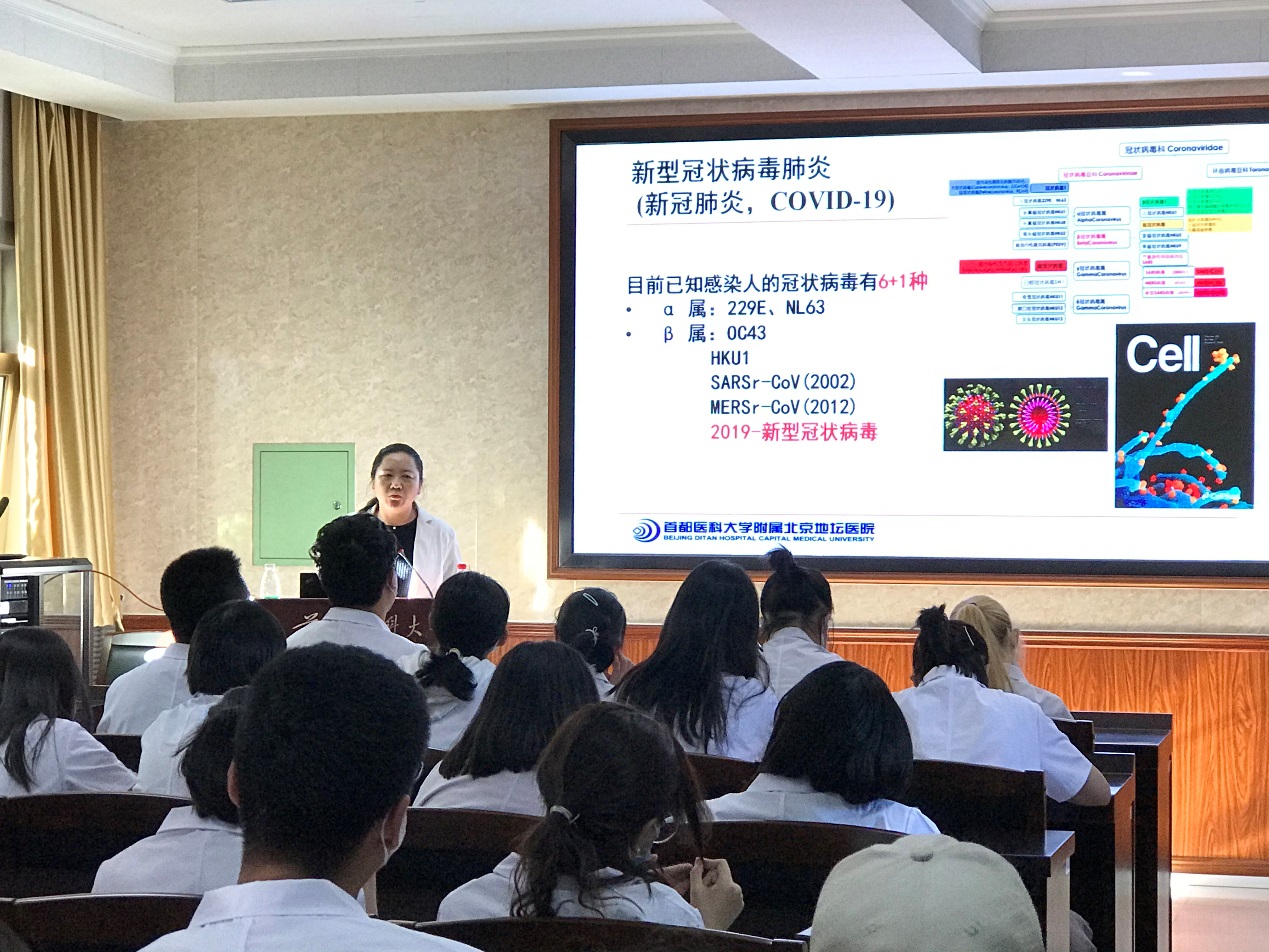 王雅杰主任介绍了微生物检验的发展历史、微生物的命名及分类等专业相关知识,从自身的实践经历与经验出发,讲述了医学检验人应追寻的“白求恩精神”。作为奋战在抗击新冠病毒一线的专家,王主任结合今年新冠疫情,理论联系实际,向同学们介绍了临床微生物学检验的现状和未来的展望,并对其进行了实验室生物安全的警示和教育,她希望同学们从新入学起,从每一次实验开始,脚踏实地的、沿着医学检验前辈们的脚步砥砺前行,将来能更好地为临床患者、为公众健康服务。