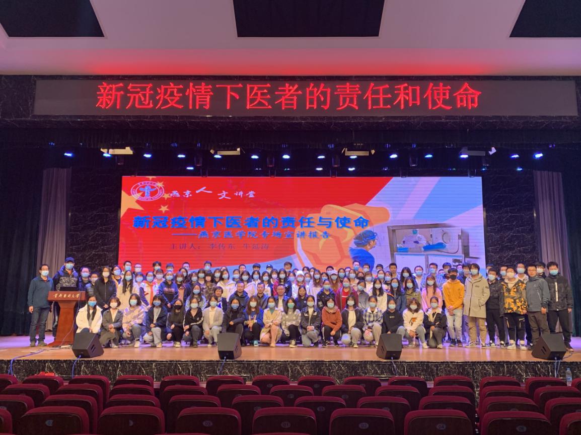 10月29日,我院举办主题为“新冠疫情下医者的责任和使命”的宣讲报告会,邀请参加抗疫一线工作的北京同仁医院放射科牛延涛老师、参加援鄂医疗工作的中日友好医院放射科李传东老师分别分享了他们经历的抗疫故事和心得体会。学院党委书记吴兵、党委副书记崔群颖、学院学生工作队伍全体老师和四百多名本科生参加了讲座。本次报告会由学生办公室主办,医学影像学学系协办,学院党委副书记崔群颖主持。