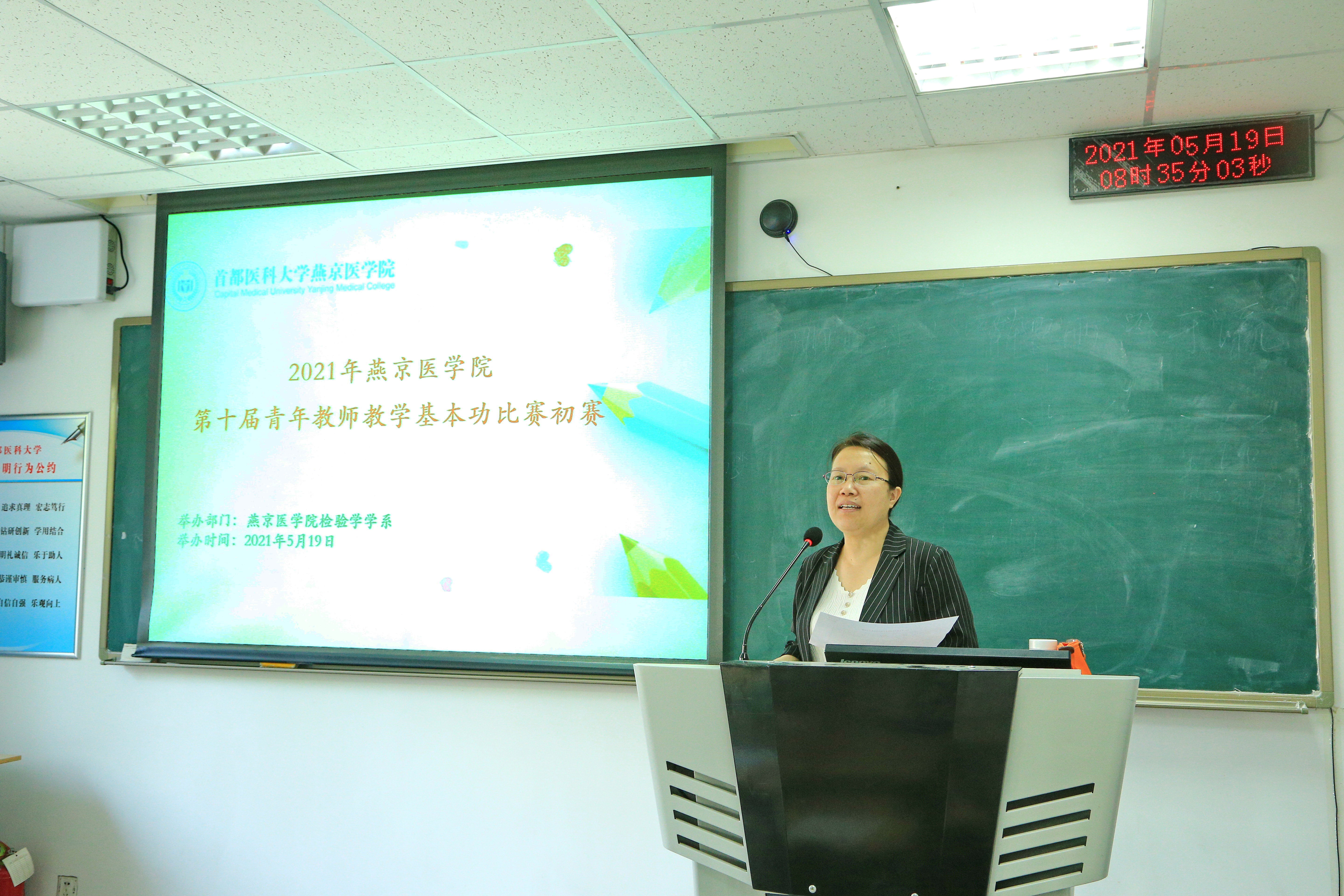 青年教师教学基本功比赛检验学学系初赛”,学院副院长赵艳芝出席了本次活动并作了讲话,系主任高春艳主持比赛。此次比赛邀请了五位专家和一名学生代表比赛担任比赛评委。