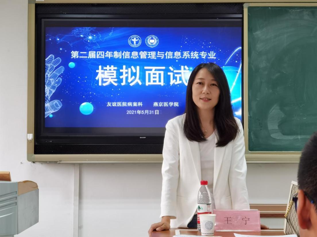 5月31日,我院邀请北京友谊医院病案科举办了信息管理与信息系统专业模拟面试。北京友谊医院病案科王宁主任及团队3位老师、学院学生办公室姜佳铃老师、信息管理与信息系统专业全体师生参加了本次活动。这是继2019年之后,友谊医院病案科第二次走进校园,与学系一起组织模拟面试,医教协同,为卫生信息管理专业人才培养赋能。