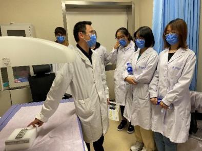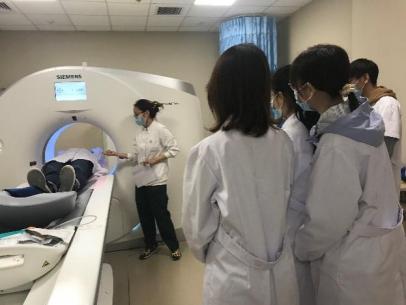 教学实践活动可以提高学生对临床放射科工作流程和成像技术的熟悉程度,提升学生对专业学习的兴趣。4月11日,在杨红院长的带领下,学系组织部分学生赴北京一脉阳光医学影像中心参加“医学影像‘看见·科普之旅’”活动,参加活动的师生通过此次活动了解到一脉阳光医学影像中心的工作情况、设备设施以及科研成果,学习了如宝石能谱CT、PET-CT、PET-MR等大型设备的工作原理及操作规范,影像后处理技术以及影像结果如何指导临床诊断等相关知识。在学生们初步了解了医学影像设备的工作原理、影像后处理技术以及影像结果与诊断的关系之后,4月18日,在杨红院长的指导下,学系组织了50名学生前往北京同仁医院亦庄院区放射科参加教学实践活动。同仁医院放射科鲜军舫主任、牛延涛主任技师、多名放射技师和工程师参与此次活动,带领学生开展了为期一天的实践活动,学生们分别对CT、磁共振、DR、乳腺DR、移动DR、骨密度、PACS、质量控制和实验器材进行轮转学习。