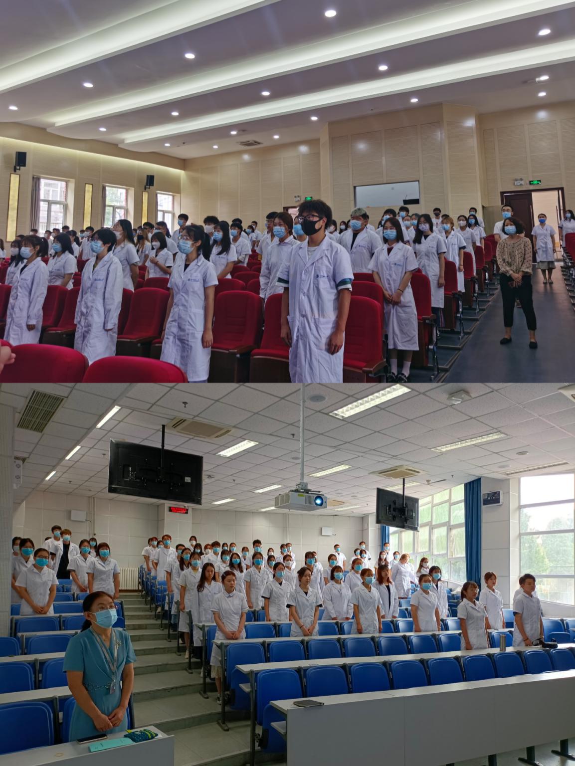 “健康所系,性命相托……我志愿献身医学,热爱祖国,忠于人民,恪守医德………”在学院分会场的2021级新生身着白衣,高握右拳,与主会场同时庄严宣誓,洪亮且坚定的声音是在宣告他们要成为一名优秀医学生的信心和决心,要为祖国医药卫生事业的发展和人类身心健康奋斗终生的无悔和誓言。