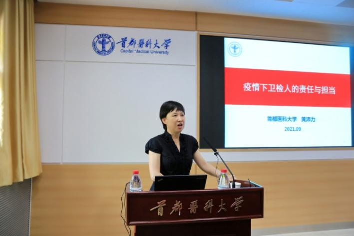 9月3日下午,我院检验学学系邀请学校公共卫生学院黄沛力教授做题为《疫情下卫检人的责任与担当》的专题讲座。学院院长杨红、副院长赵艳芝与2020级检验学学系新生一起参加了讲座,讲座由检验学学系副主任彭玉龙主持。