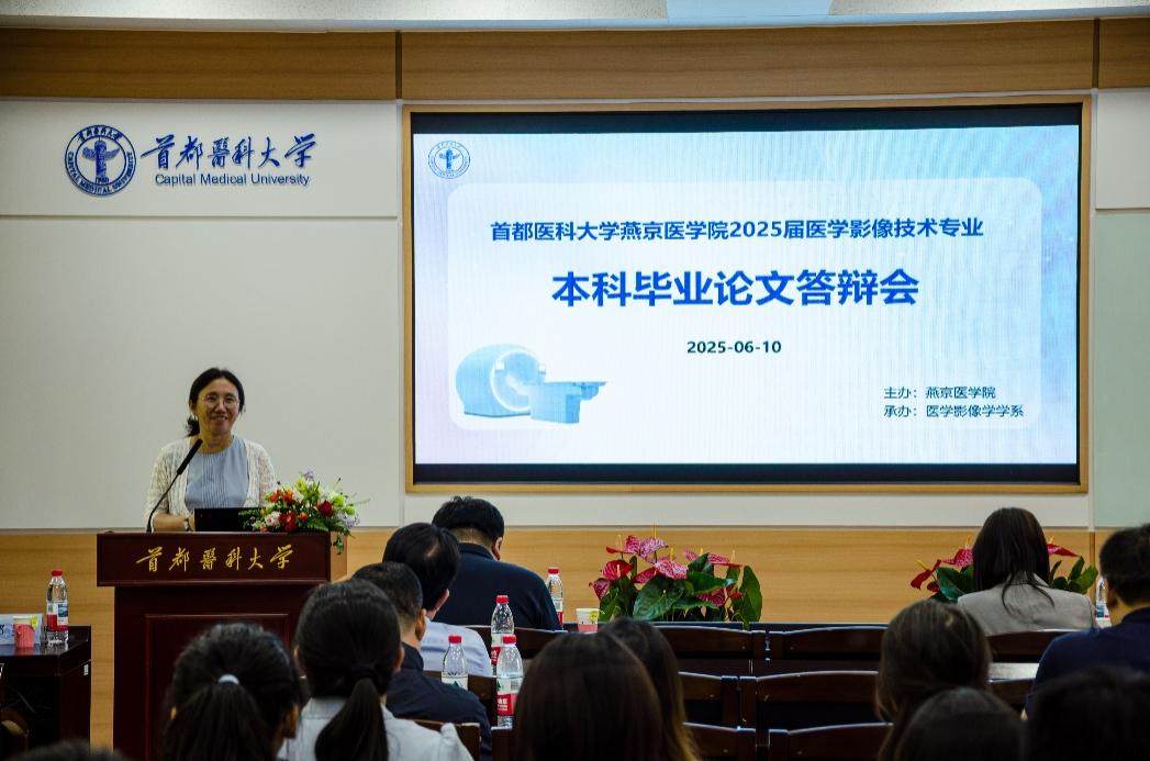 6月10日,我院医学影像技术专业2025届毕业论文答辩会在燕勤楼召开。教务处督导专家杜菁,学院党委书记汤海新,党委副书记赵艳芝,医学影像学学系主任胡玲静,答辩专家,学系教师及2021级医学影像技术专业全体毕业生参加了本次答辩会。开幕式由学院副院长鄢雯主持。
