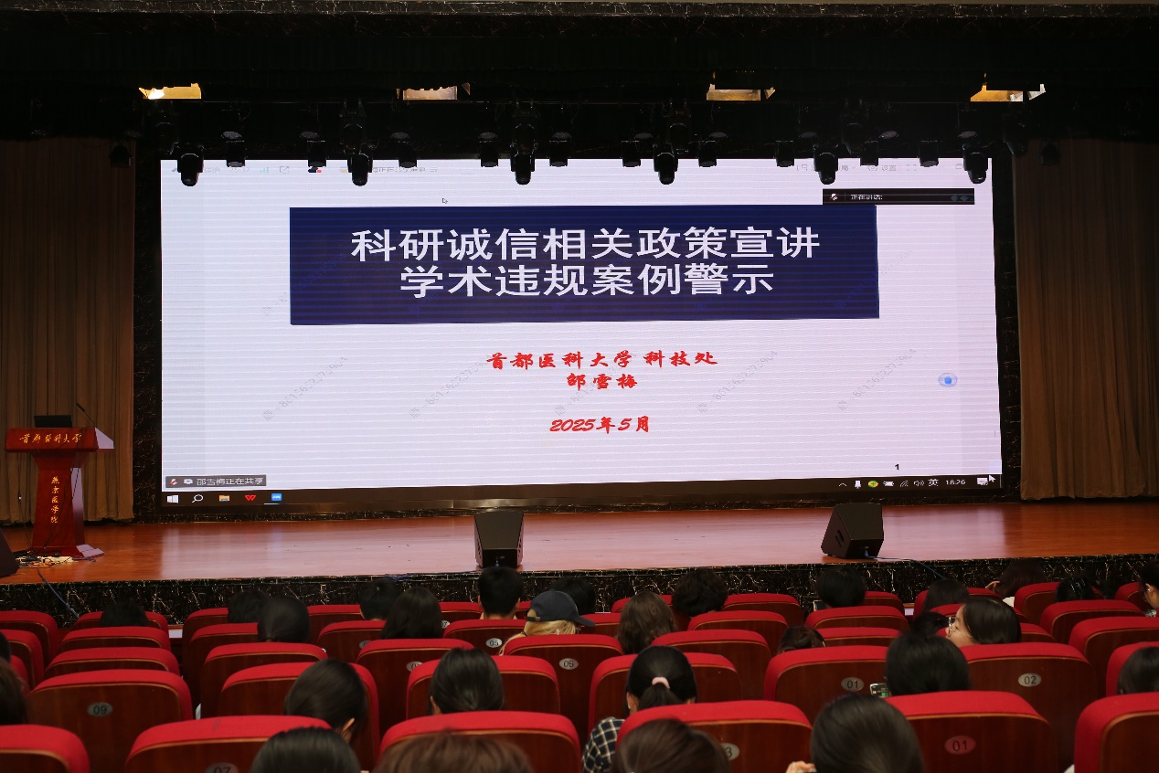 邵雪梅先后介绍了国务院办公厅印发的《关于进一步加强科研诚信建设的若干意见》及科技部等二十二部门联合印发的《科研失信行为调查处理规则》《医学科研诚信和相关行为规范》《人类遗传资源管理条例实施细则》《负责任研究行为规范指引》《科研诚信规范手册》等相关文件,深入浅出地向学生讲解了科研活动中涉及的实验记录、医学伦理、生物安全、论文投稿等学术规范和学术诚信问题。同时,通过一些真实的学术违规行为案例,警示同学们要以严谨态度对待学术研究,时刻坚守科研诚信底线,杜绝学术不端行为。