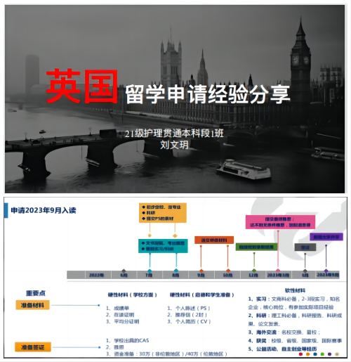 刘文玥同学主要就留学申请的流程、重要的时间节点以及其他重要事项进行了分享。