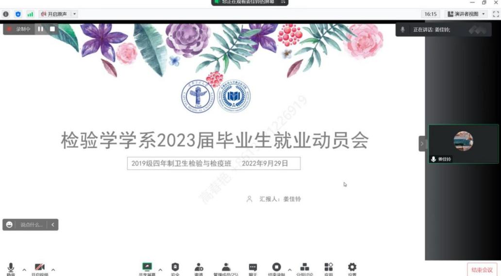 9月29日,检验学学系召开2023届毕业生就业动员会线上会议,学系党支部书记李琴、主任高春艳、班主任李琳、辅导员姜佳铃及学系全体2023届应届毕业生参加了本次动员会。