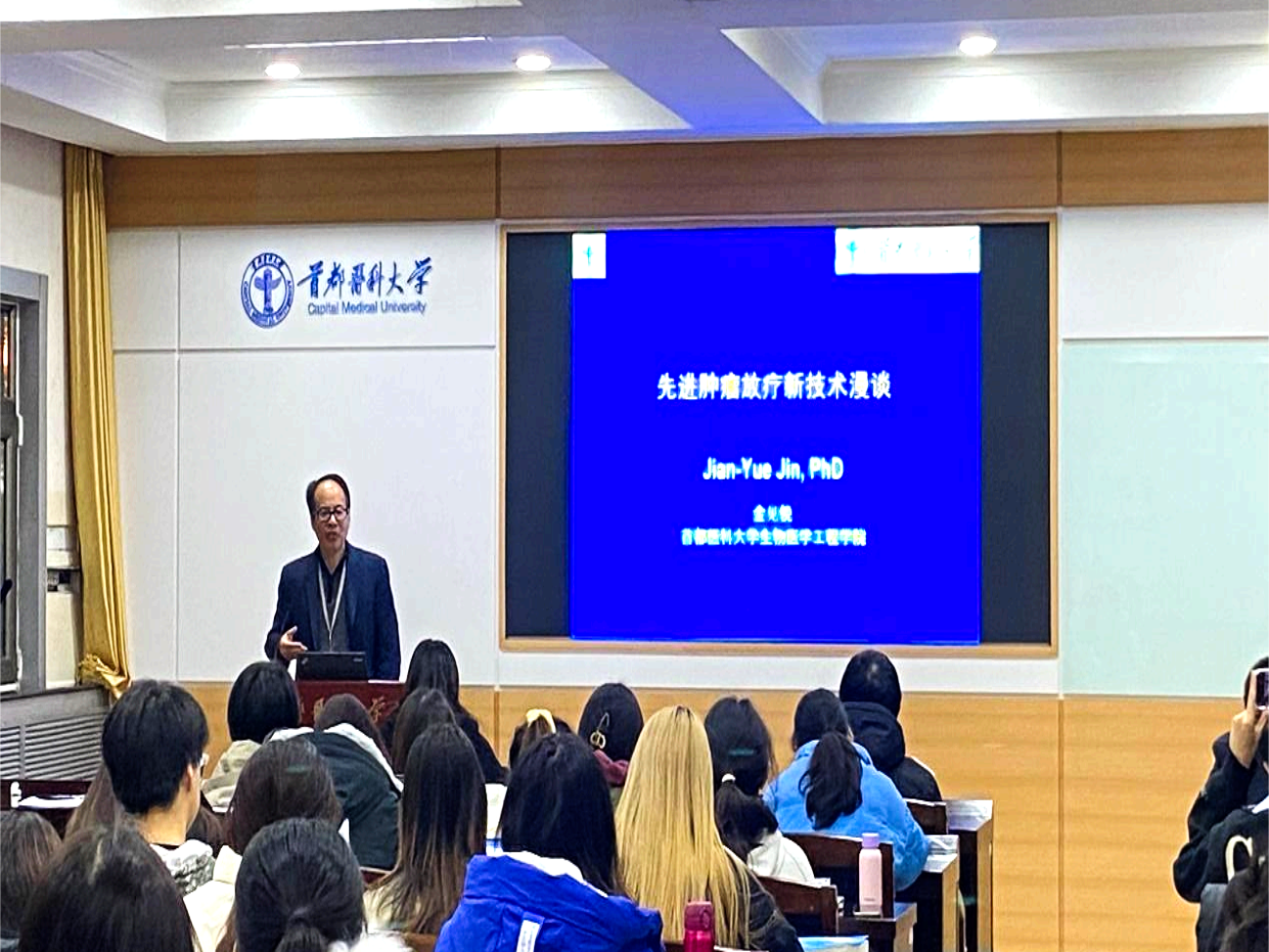 其后,金教授为学系师生带来了题为“肿瘤免疫治疗时代放射治疗新技术展望”的讲座,学系全体教师和各个年级学生代表参加了本次讲座。