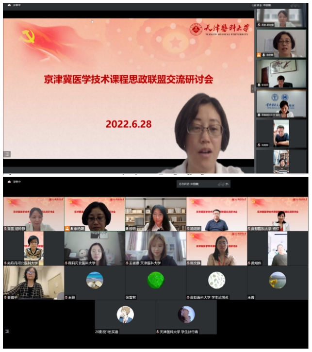 为推动医学技术类专业建设,落实立德树人根本任务,抓好课程育人的主渠道作用,6月28日,我院与天津医科大学医学技术学院、河北医科大学医学影像学院共同建立京津冀医学技术课程思政联盟,并开展了第一次线上京津冀医学技术类及相关专业教师课程思政交流活动。