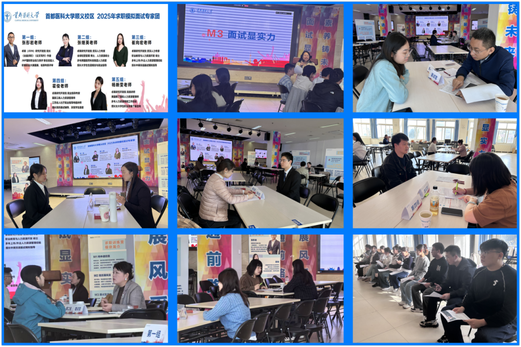 为将培训成果转化为实战能力,第一轮求职训练营结束后,学院紧接着开展了“求职一对一模拟面试”活动。根据顺义校区学生的专业方向和求职意向,学院认真对接资源,精准匹配了来自医药科技企业高管和资深面试HR等5位专家担任面试官,为学生打造了高度仿真的面试场景。模拟面试现场,面试官们针对每位同学进行了简历点评、深度提问和压力测试。通过实战化演练,为毕业生打造面试“预演场”