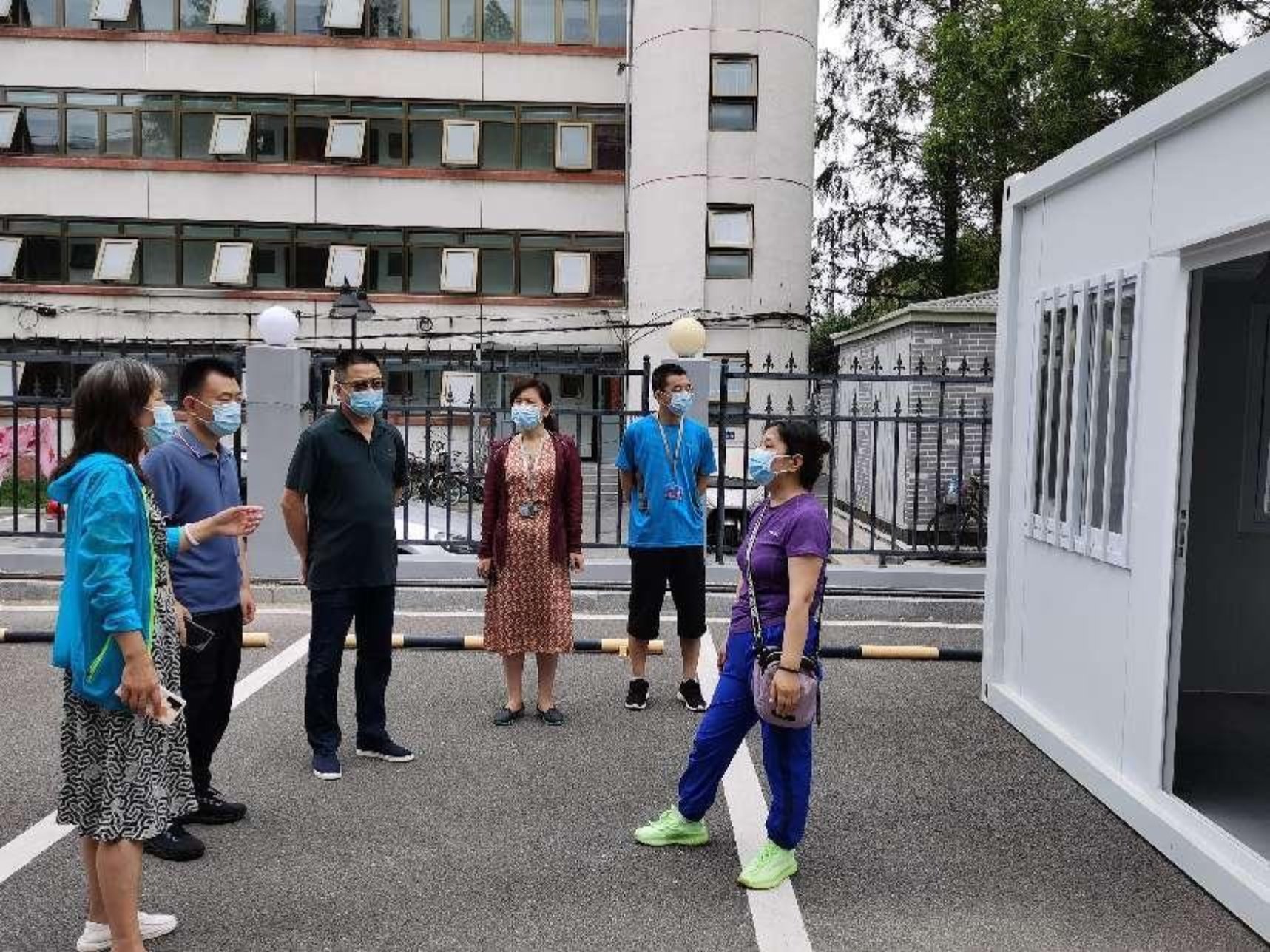 为稳妥做好秋季开学疫情防控工作,8月8日,顺义区光明街道办事处、社区卫生服务中心专家到学院指导学院核酸采样点配套设施设置工作,现场讨论了三区两通道位置安排、采样点通道、扫码、采样窗口规范设置、样本存放转运和医疗垃圾转运等细节问题。