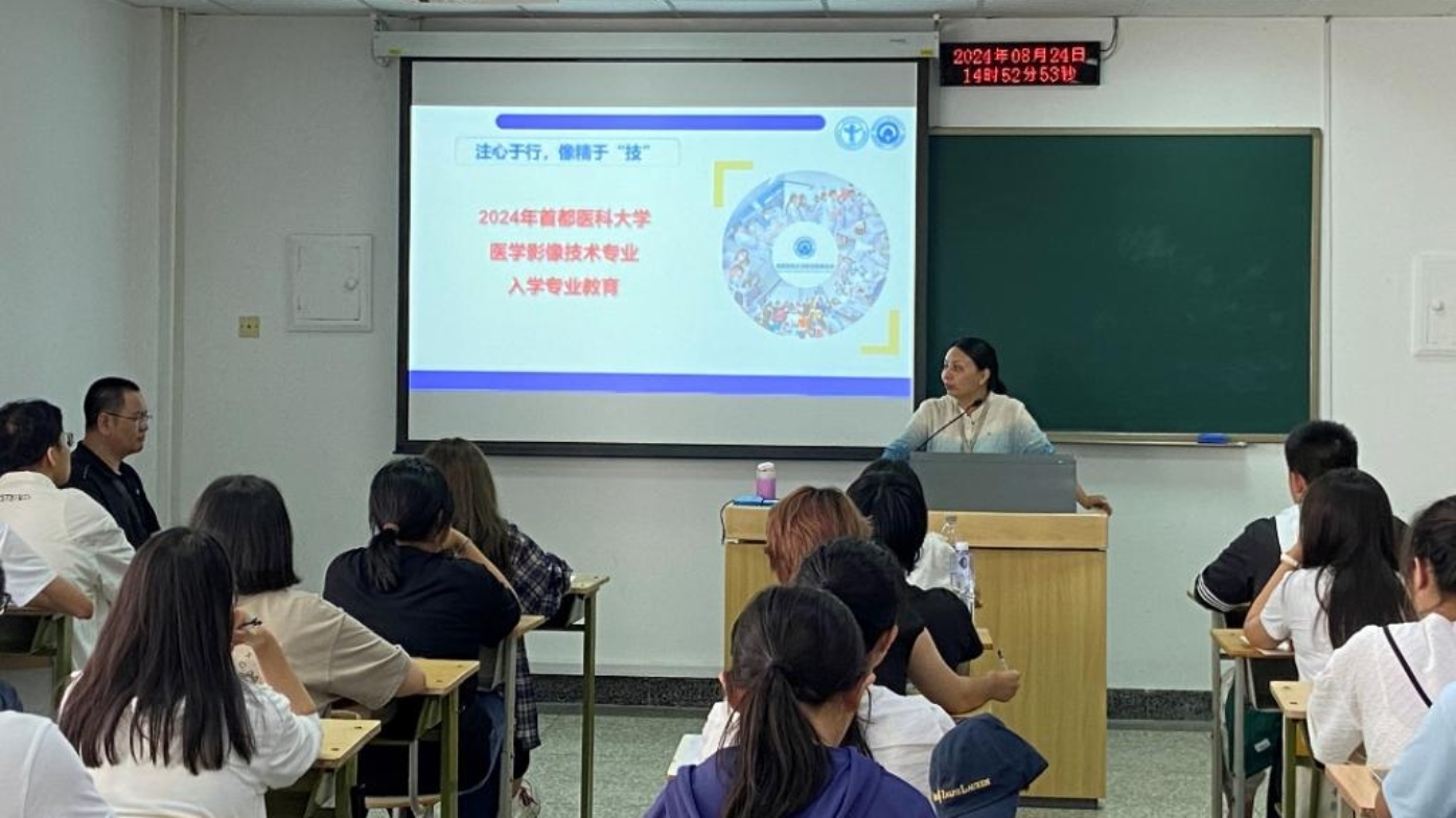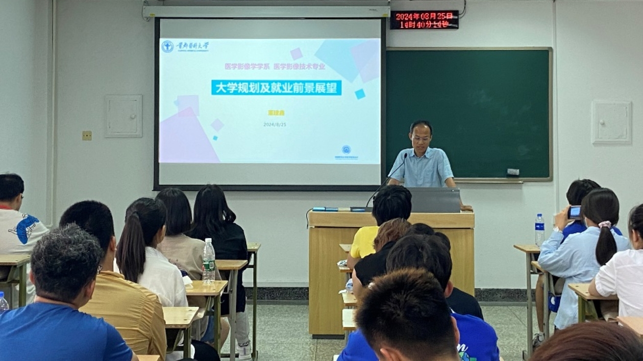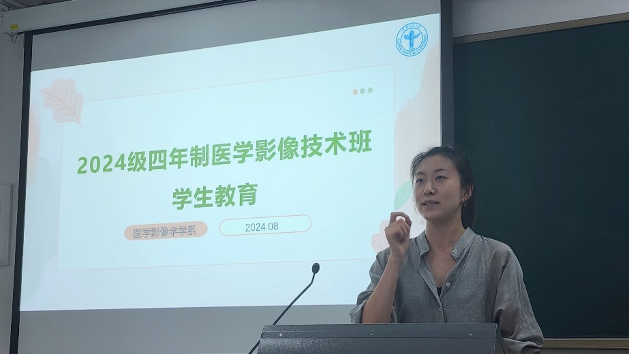 仲秋时节,骄阳似火,医学影像学学系迎来了充满活力的2024级新同学。24日下午,新生入学班会在燕谨楼303教室举行,学院党委副书记赵艳芝,医学影像学学系党支部书记、系主任胡玲静,班主任胡贵祥老师出席此次班会,班会由辅导员许冰洁主持。