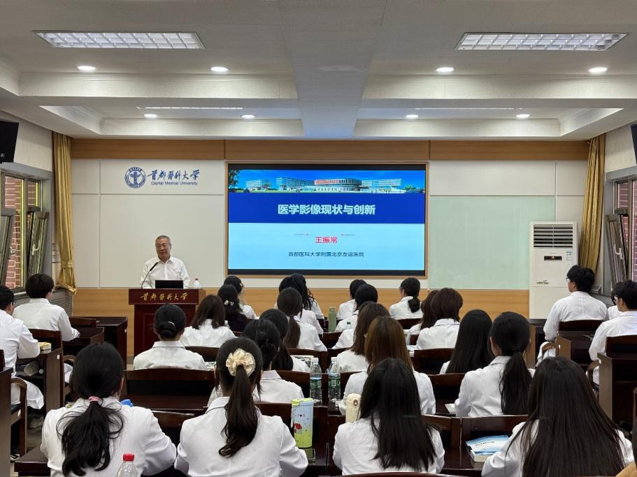 9月8日,哔咔漫画下载 附属北京友谊医院的中国工程院院士王振常教授为2025级医学影像技术专业新生讲授以“医学影像现状与创新”为主题的专业导论课。学院党委书记汤海新、学系主任胡玲静、副主任胡贵祥、韩文静及学系教师参加了此次活动。