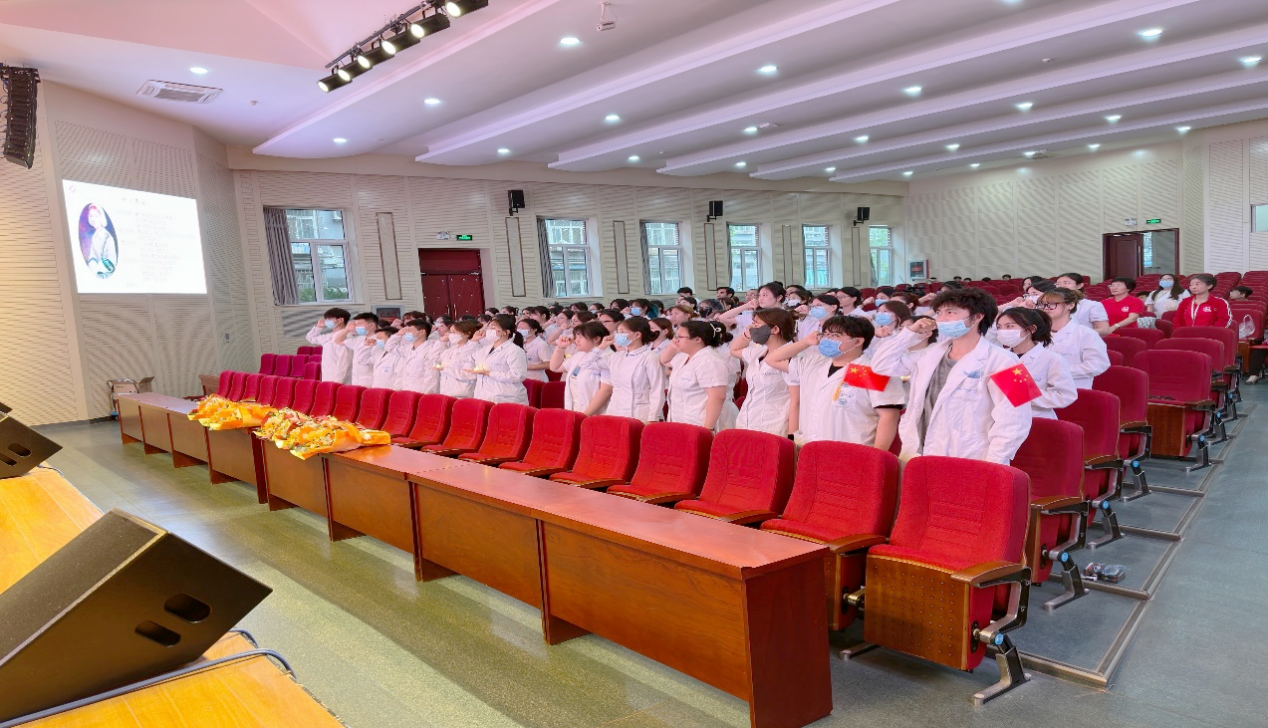 随后,余晓云老师带领全体护理学学系学生一起宣誓,激励他们不断学习,不忘身为白衣天使的初心使命,为护理事业的进一步发展做出贡献。同学们铿锵有力的宣誓声在整个会场回荡,振奋人心。