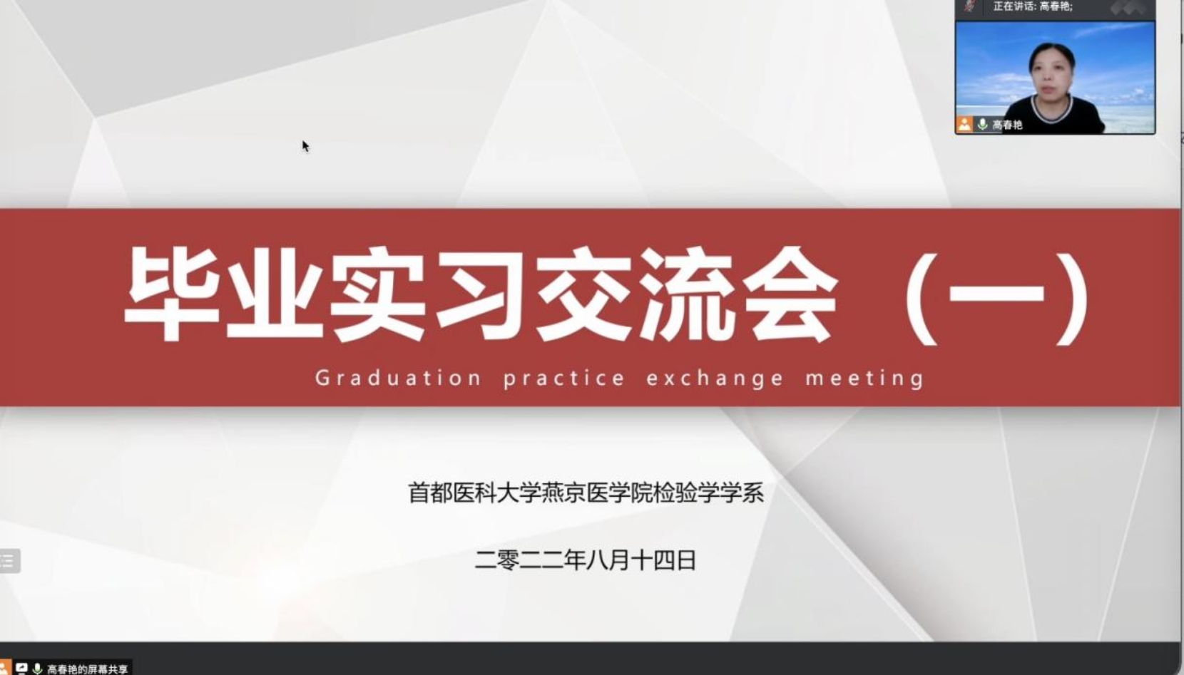 8月14日上午,检验学学系召开第一次毕业实习交流会。2019级卫生检验与检疫专业全体学生及学系支部书记李琴老师、辅导员姜佳玲老师参加会议,会议由学系主任高春艳老师主持。