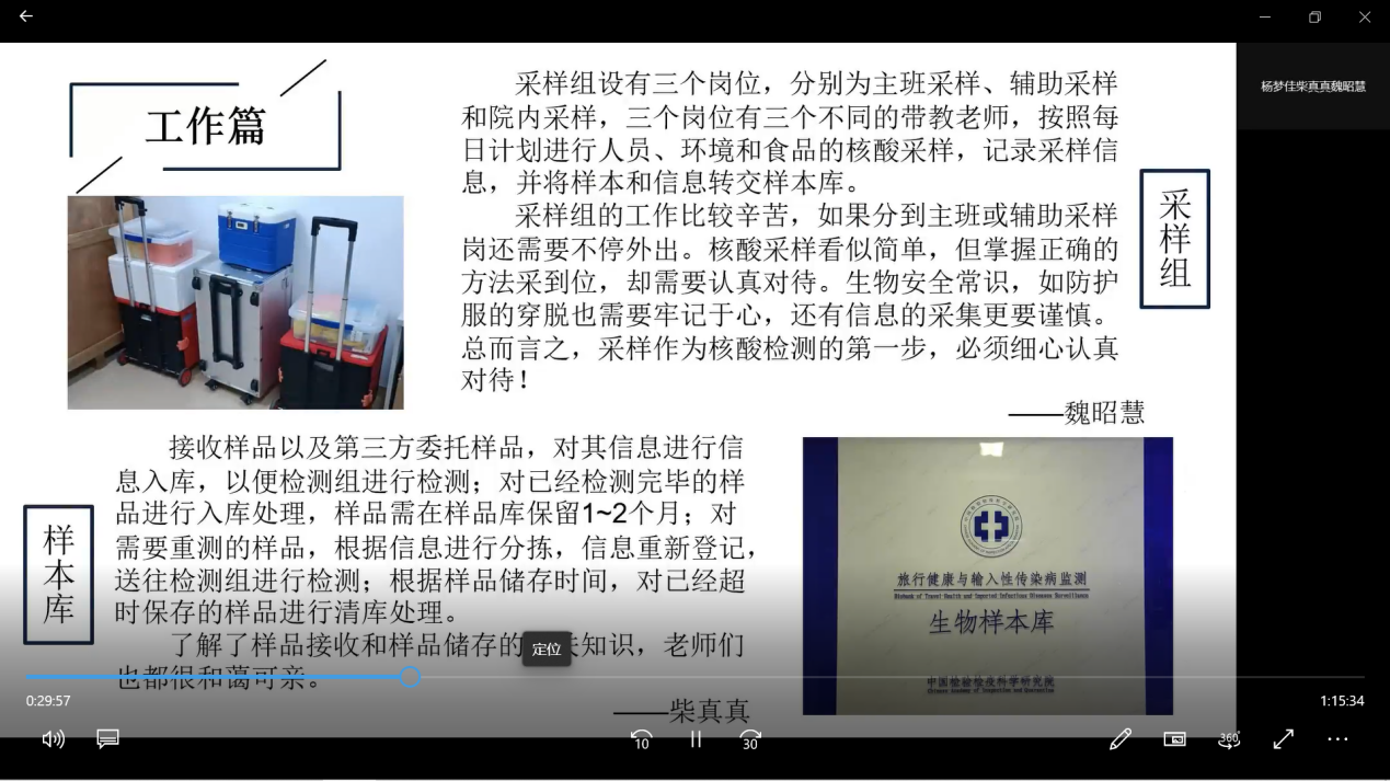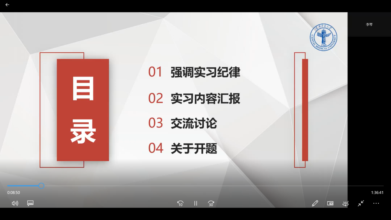 在实习内容汇报环节,同学们积极分享自己的实习经历,从工作、生活、开题报告进展等三个方面进行阐述。通过来自不同实习基地同学们的分享,大家进一步了解了各实习基地工作和生活情况,为未来就业工作打下了坚实的基础。辅导员姜佳铃老师叮嘱同学们在实习期间要互帮互助,团结协作。