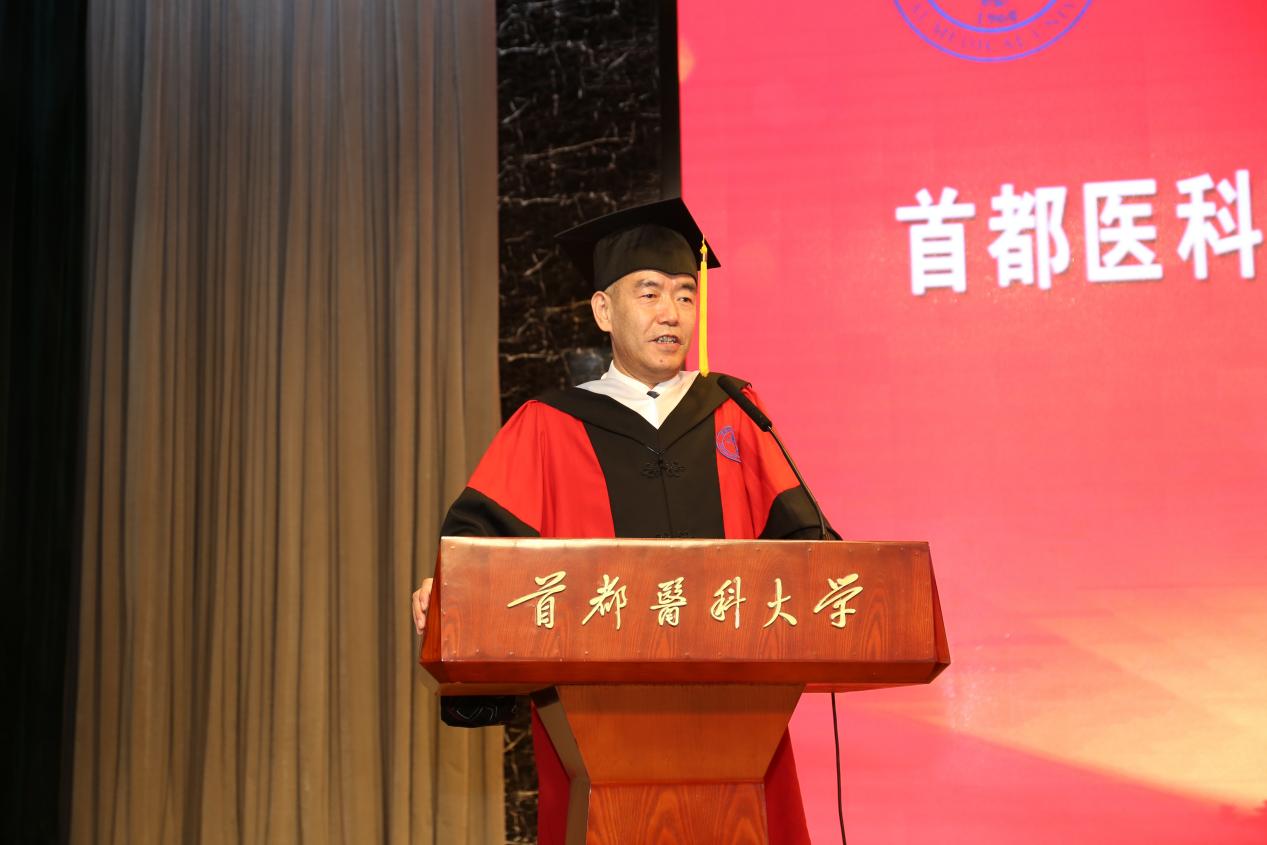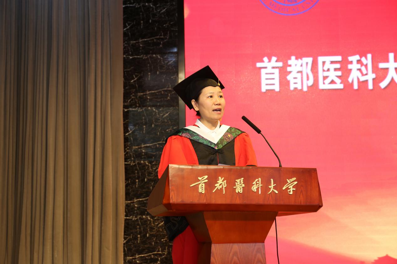 预防医学学系龙鑫作为教师代表发言,希望同学们能够谨记习近平总书记的谆谆教诲,功崇惟志,业广惟勤,坚定不移地听党话、跟党走,做有理想、敢担当、能吃苦、肯奋斗的新时代好青年;希望同学们永远不要从学习中毕业,在未来的医者之路上,要严谨务实、勤学深思、努力钻研,不断创新,使自己的医者人生与健康中国的建设与和发展同向同行,熠熠生辉。