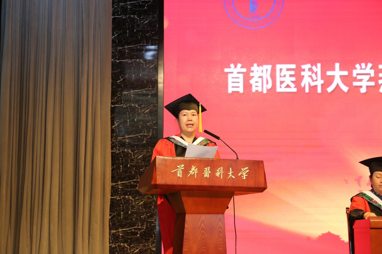 校党委常委、副校长吴兵,学院党委书记汤海新,党委副书记、院长杨红,党委副书记赵艳芝,副院长崔群颖、刘清、刘吉明和临床教学医院相关领导出席典礼,各学系党支部书记、主任、教师代表、辅导员老师、学院相关部门主要负责人、2023届毕业生、2022届毕业生代表以及家长代表齐聚一堂,共同参加并见证这场毕业盛典。典礼由学院副院长崔群颖主持。