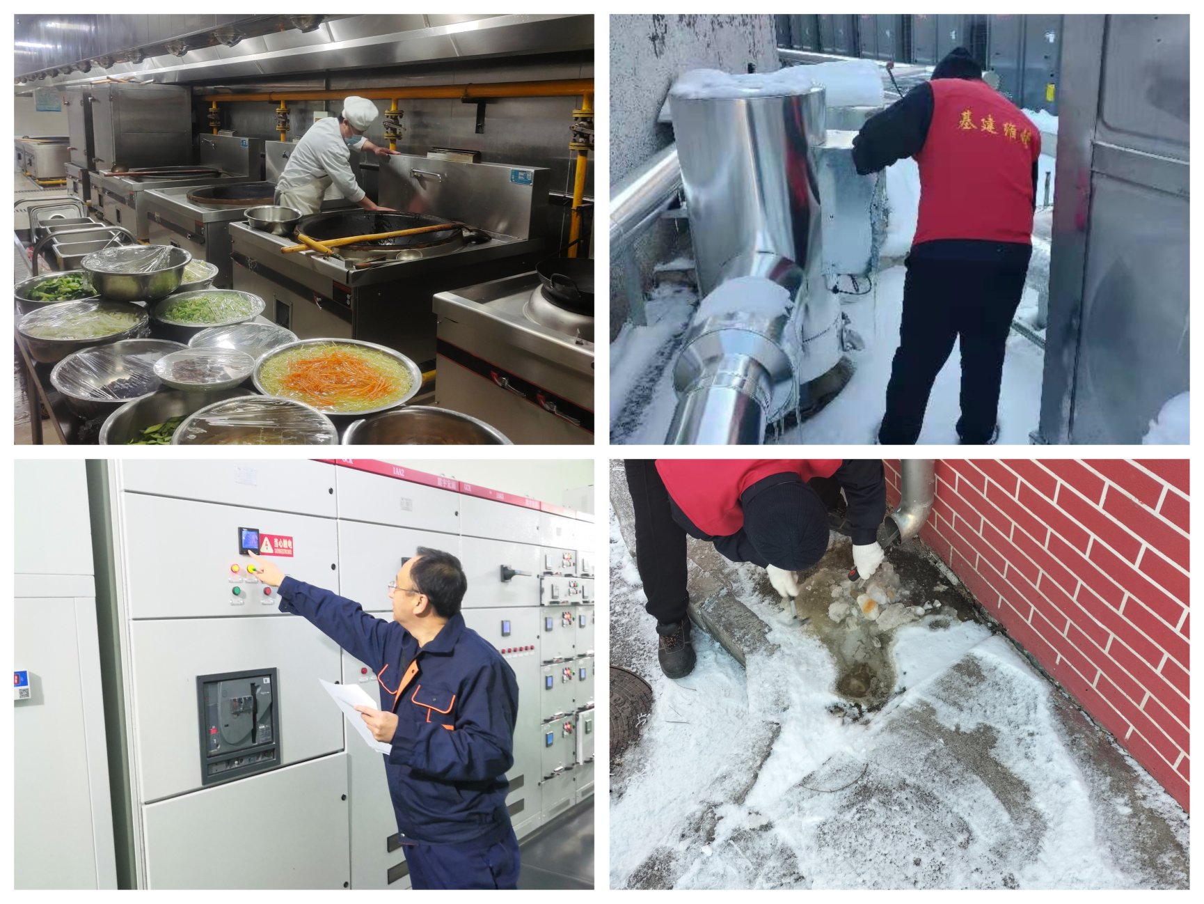 学院食堂启动应急方案,保证餐食供应正常。后勤基建和电力部门员工雪后检查供暖、 供水、供电情况,确保学院各项保障设施运转正常。