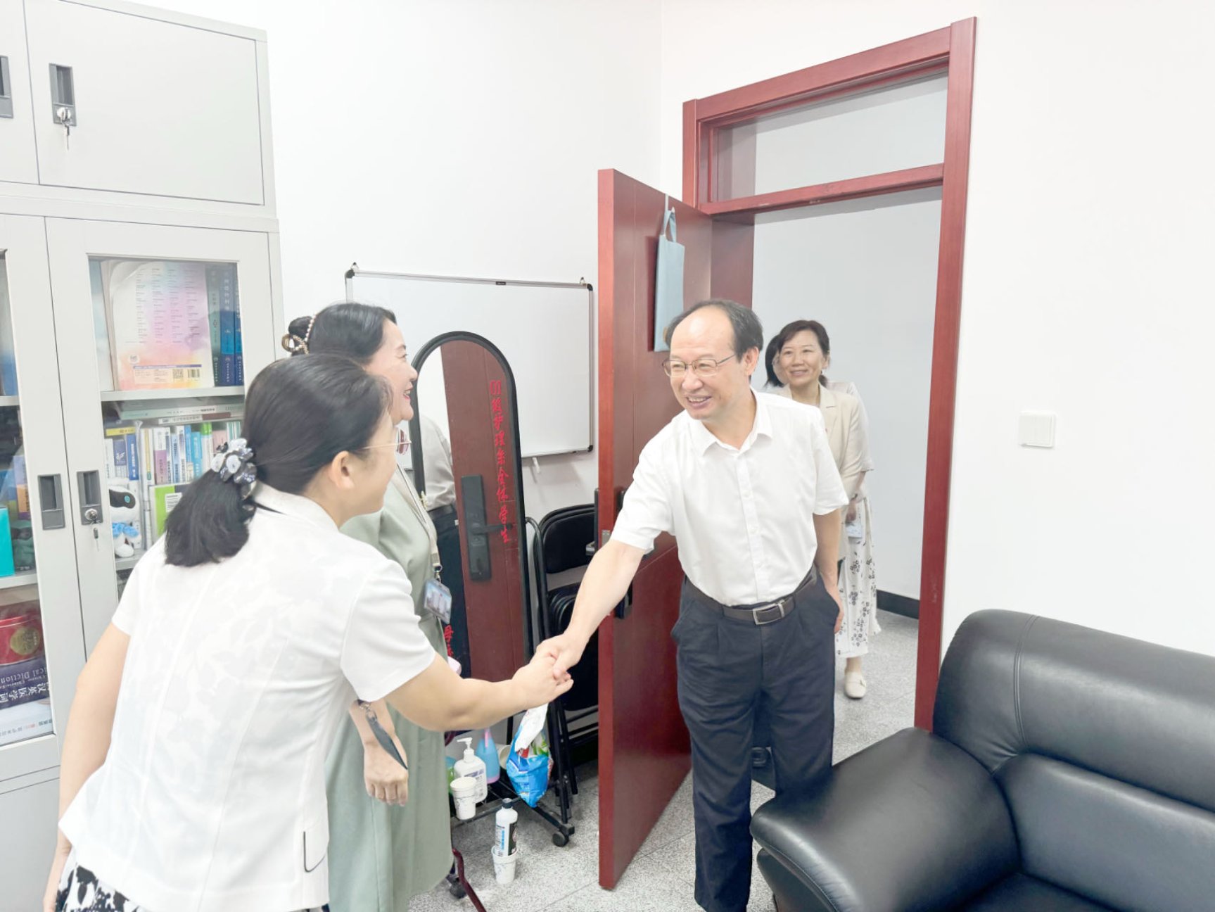 呼文亮看望学系教师,对大家的辛勤付出表示衷心的感谢。
