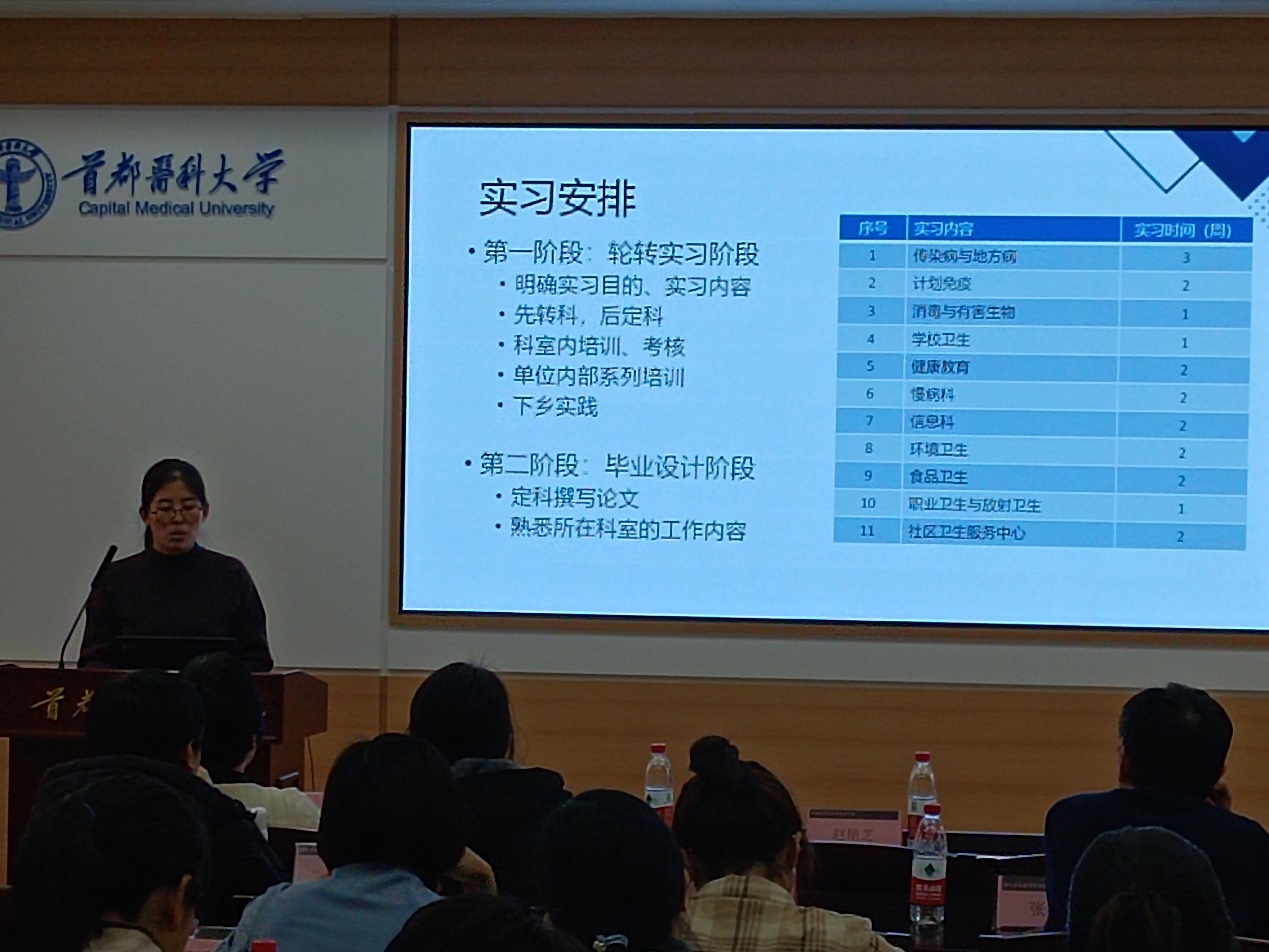 最后,赵艳芝作总结讲话。她表示,本次会议是共商更高质量公共卫生人才实习培养模式的重要契机,学院和实习基地将继续以输送优秀的预防医学专业人才为导向,以科室轮转实习、课题设计和论文撰写为依托,从教学设计强化、理论与实践融合、过程管理细节明确等方面入手,共同进步,为北京公共卫生人才培养的发展共同努力。