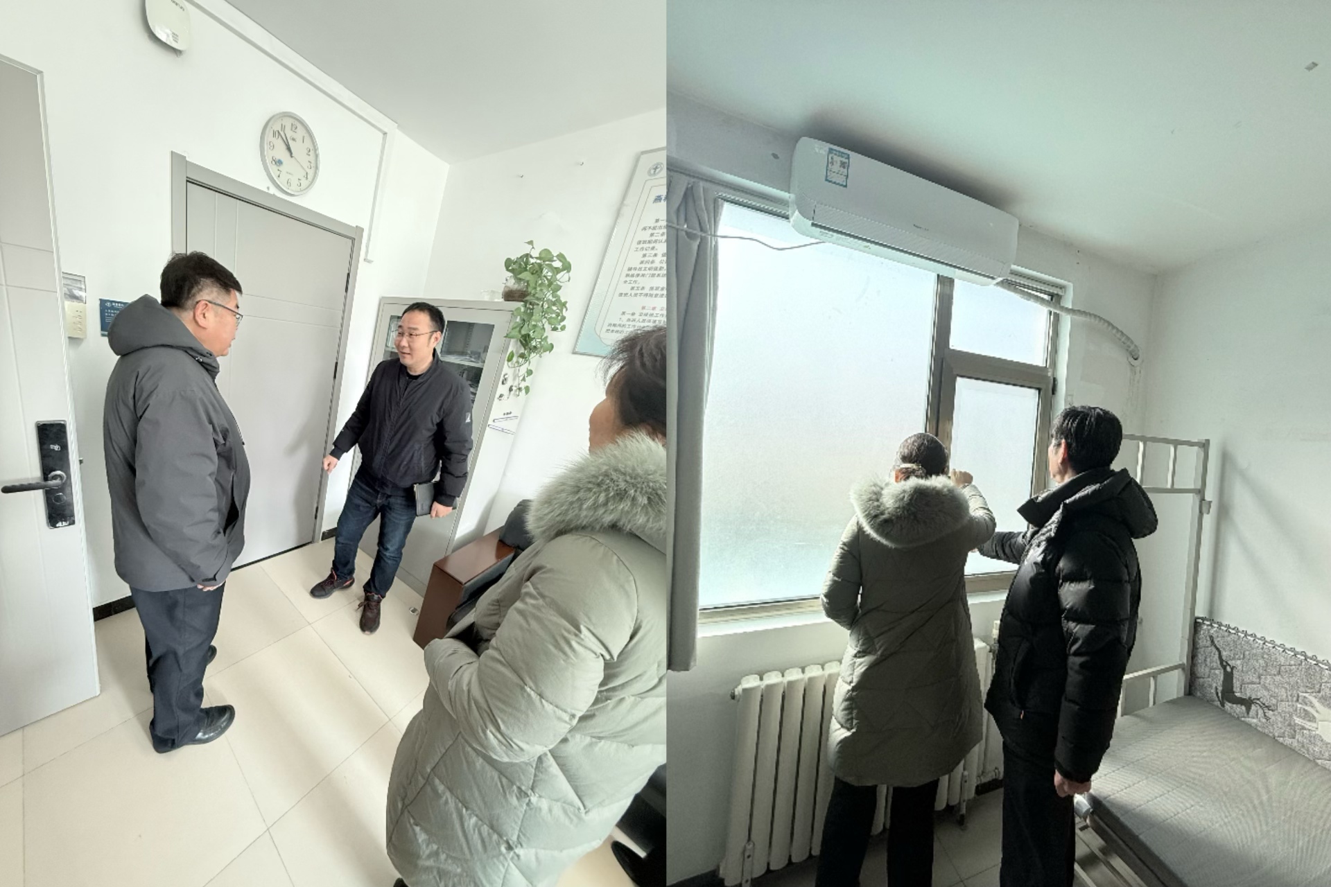 学院领导到学生宿舍检查假期门窗修缮改造情况,询问了解学生当前返校情况。