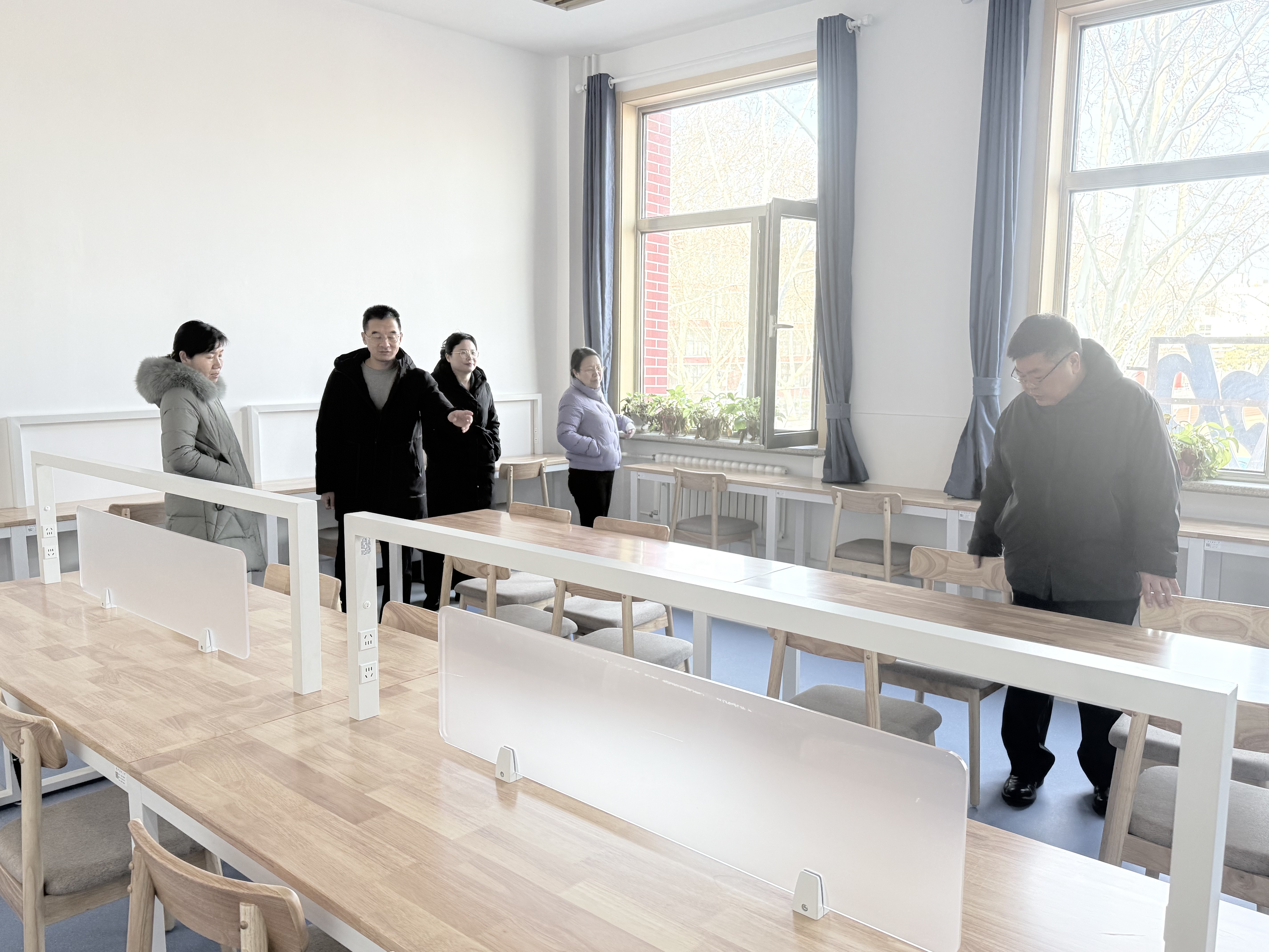 学院领导到图书馆检查纸本阅读室升级改造情况。