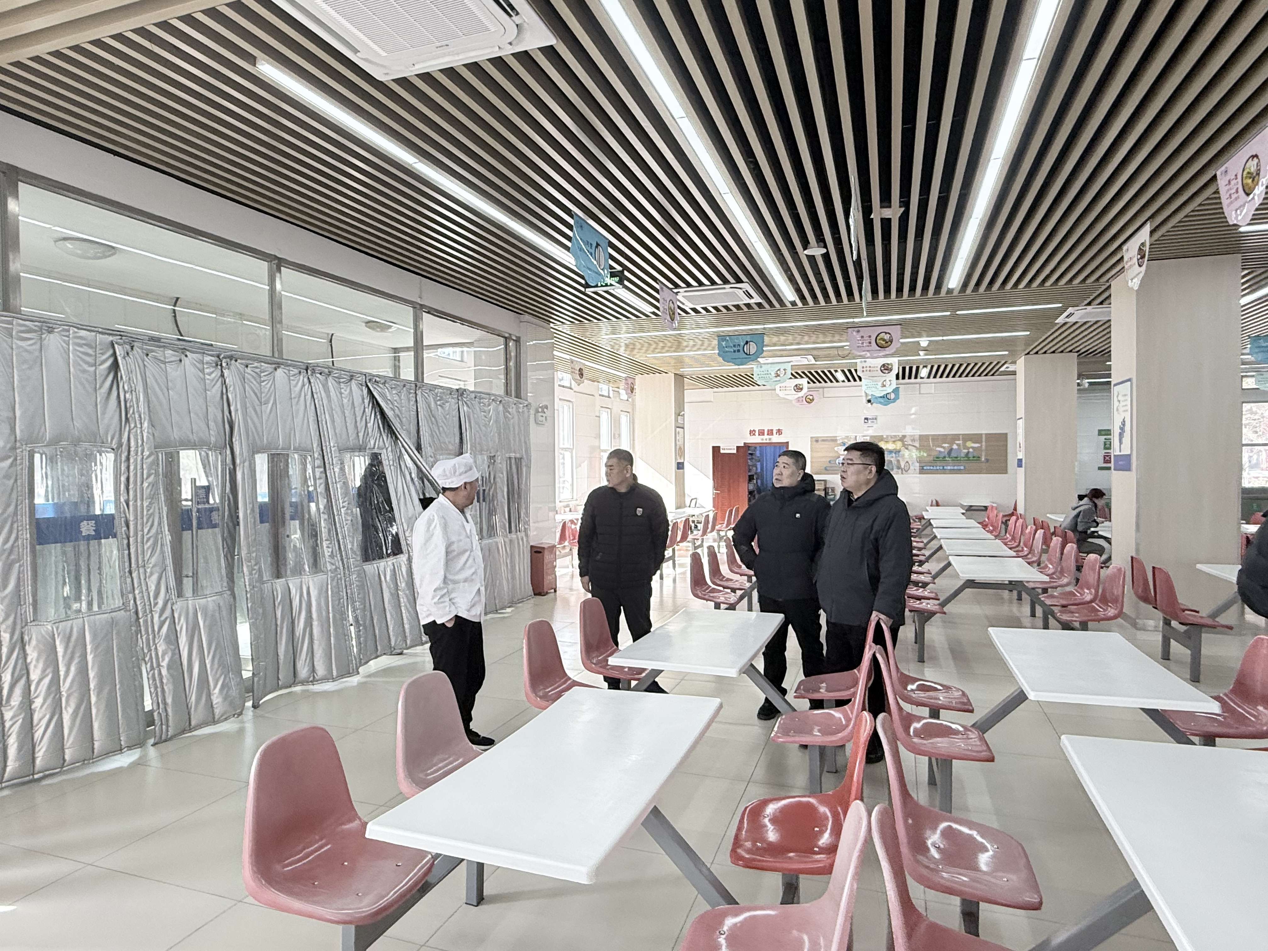 学院领导在检查餐厅时强调,新学期要始终把食品安全卫生放在首位,严格落实各项食品操作规范,全面加强校园餐饮安全管理,切实保障广大师生"舌尖上的安全",让师生吃得安心、吃得舒心、吃得健康。
