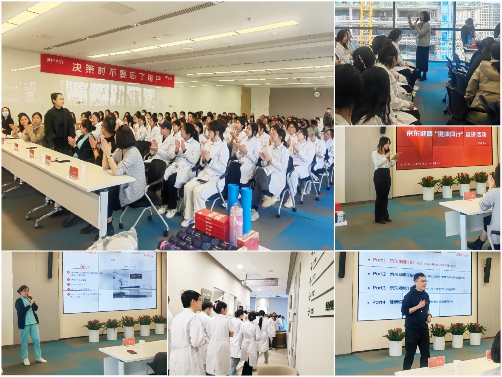学生分3个小组分别参观了京东健康综合门诊各诊室布局、设备设施及人文环境。京东集团领导介绍了京东发展历程、公司概况、核心业务以及京东健康的价值理念和门诊部体检中心的岗位人才需求情况,并与学生进行了现场互动。余晓云也介绍了学院护理学生的培养计划以及就业前景。