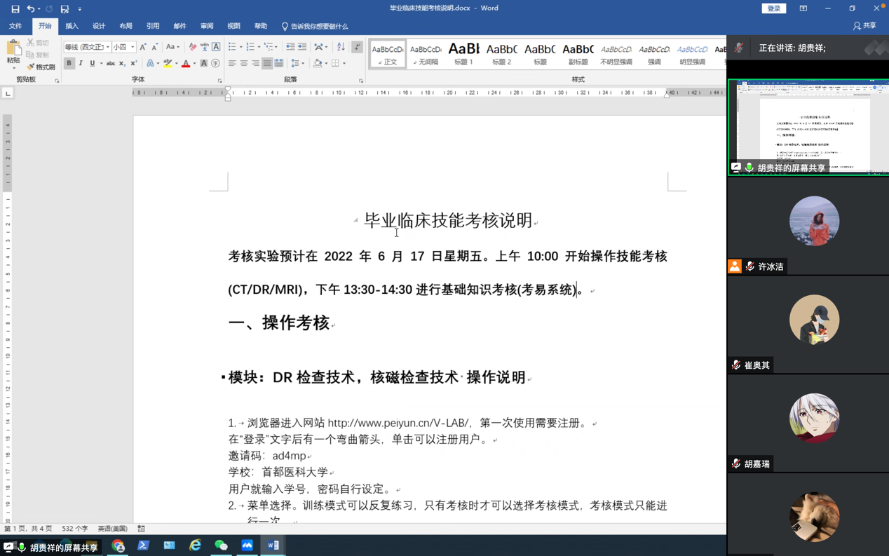6月17日,2018级医学影像技术专业本科生于线上进行了毕业技能考核,这是医学影像学学系首次组织这一考试。考核分为实践操作考核和基础理论考核两部分。依据学校、学院线上考试要求,本次考核在双机位监考条件下进行。