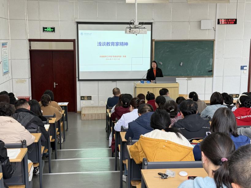 11月11日,为深入学习贯彻习近平新时代中国特色社会主义思想,大力弘扬教育家精神,进一步加强学院师德师风建设,以教育家精神引领广大教师做好立德树人工作,学院特邀学校党委教师工作部副部长、宣传部副部长李骥来学院举办了题为“浅谈教育家精神”的专题讲座。学院全体领导及100余名教师代表聆听了讲座。此次讲座拉开了学院2024年师德主题教育活动周的帷幕。