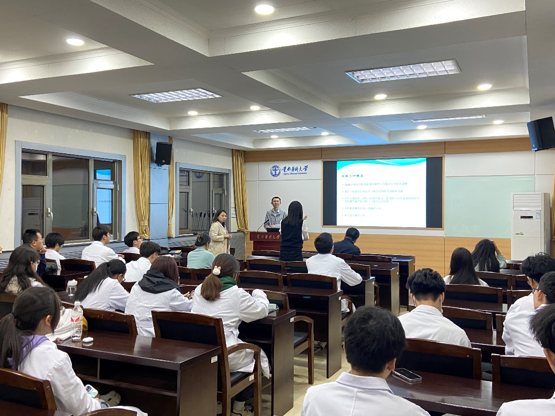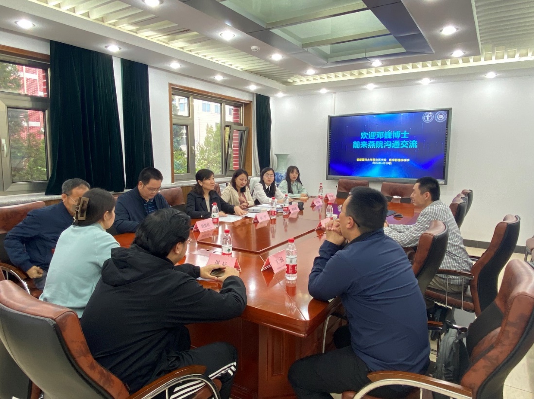 活动分为两部分,第一部分为邓巍博士和医学影像学学系教师的学科研讨会。学院党委副书记、院长杨红教授出席研讨会,并代表学院对邓巍博士表示热烈欢迎。邓巍博士和学系教师逐一介绍了个人研究背景和当前研究方向,并就双方感兴趣的内容进行了深入讨论。