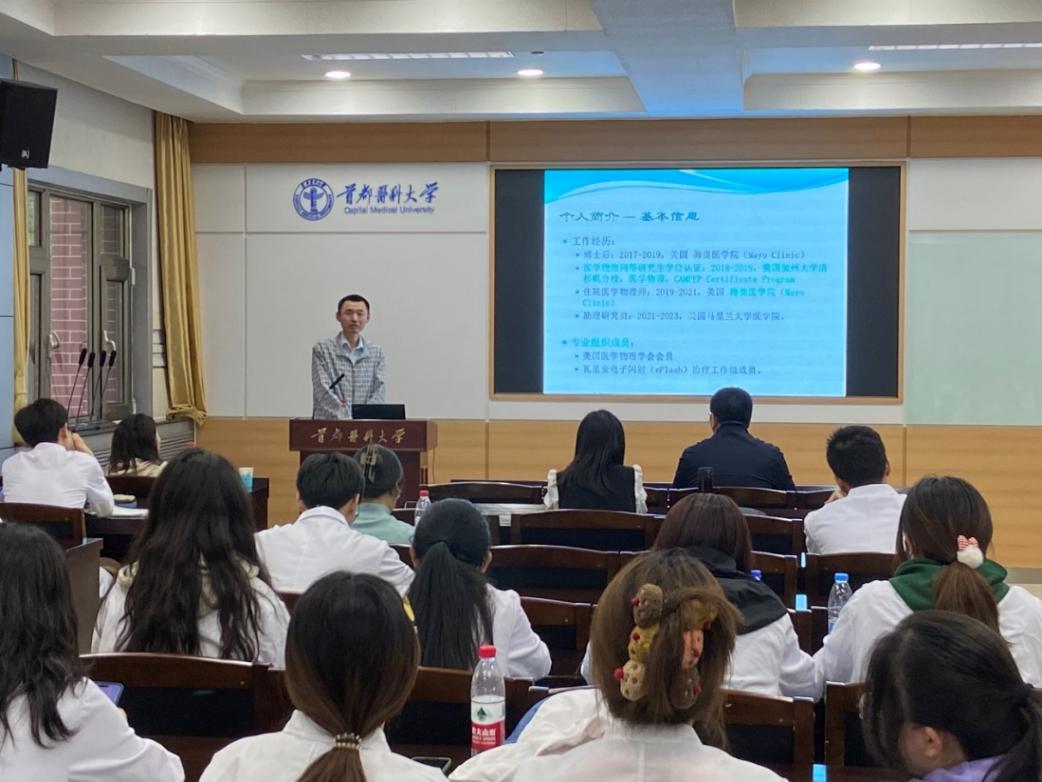 活动第二部分由邓巍博士为学系师生带来题为“质子放疗临床经验及前沿科研总结”的讲座,学系全体教师和各年级学生代表参加了本次讲座。