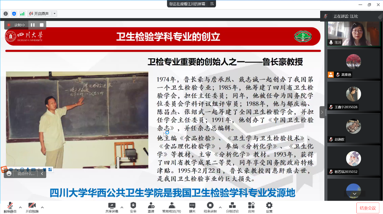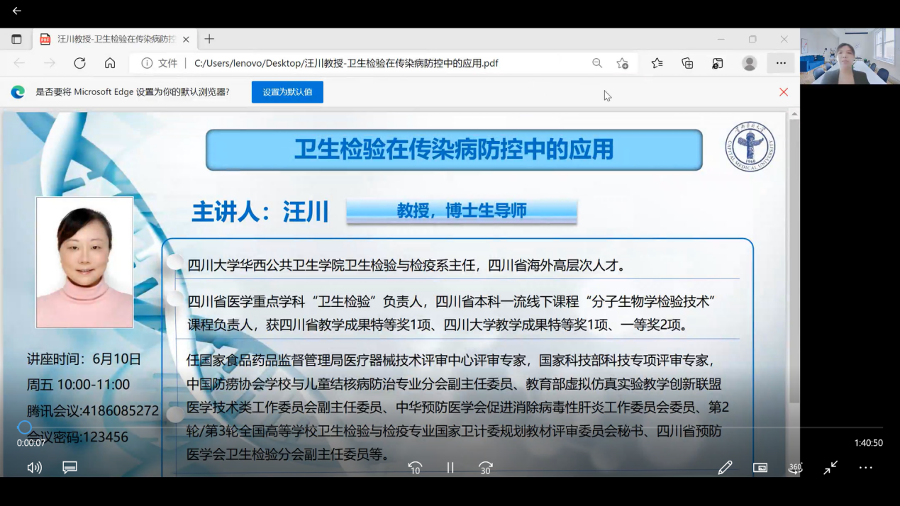 检验学学系邀请四川大学华西公共卫生学院汪川教授举办线上讲座